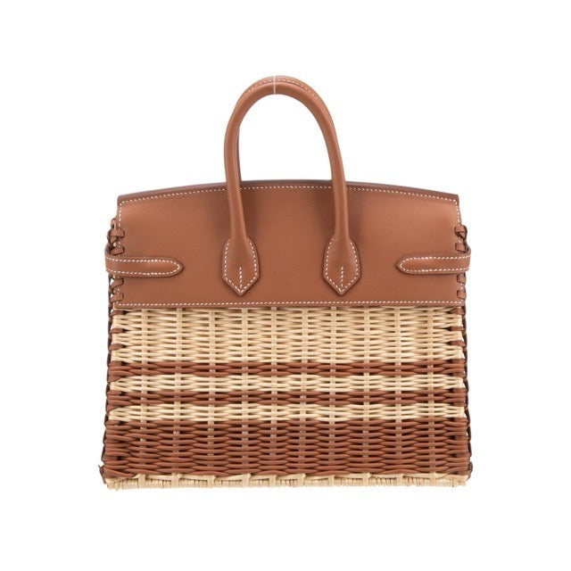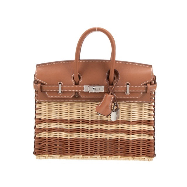 エルメス バーキン25 ピクニック ストライプ カゴバッグ ゴールド スイフト ラタン シルバー金具 HERMES BIRKIN 25 PICNIC STRIPS GOLD SWIFT RATTAN SILVER HARDWARE