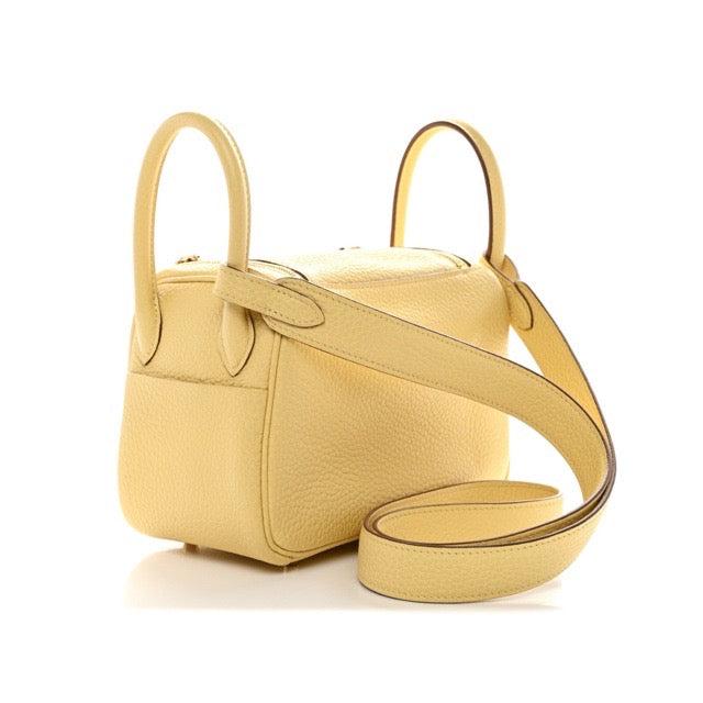 エルメス ミニリンディ 20 ヴェルソ ジョーヌプッサン ナタ トリヨンクレマンス ゴールド金具 HERMES MINI LINDY 20 VERSO JAUNE POUSSIN NATA TAURILLON CLEMENCE GOLD HARDWARE【中古】