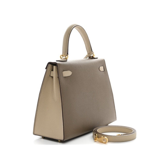 エルメス ケリー25 スペシャルオーダー 外縫い バイカラー エトゥープ トレンチ エプソン マットゴールド金具 パーソナルオーダー ホースシュー HERMES KELLY SELLIER 25 ETOUPE TRENCH EPSOM BRUSHED GOLD HARDWARE HSS【中古】