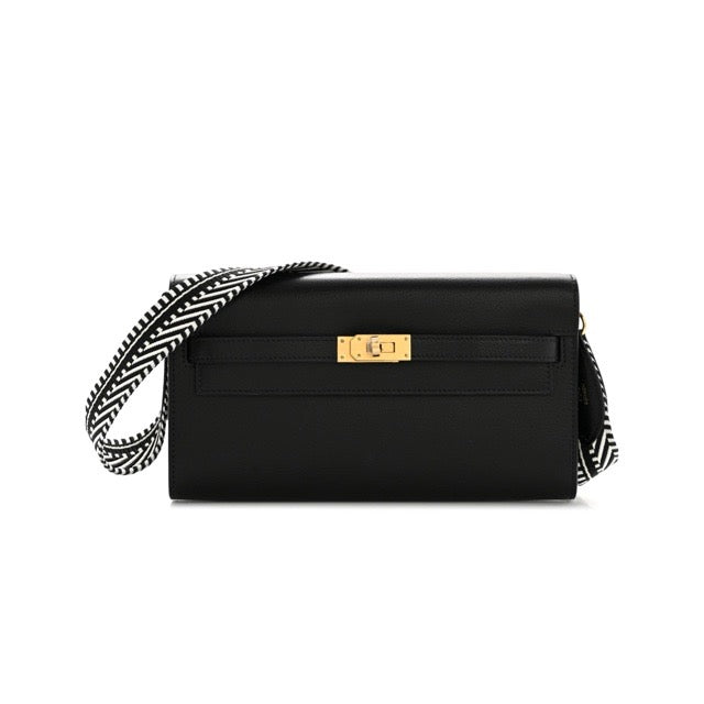エルメス ケリーウォレット トゥーゴー カヴァル 長財布 ブラック エヴァーカラー エバーカラー ゴールド金具 HERMES KELLY WALLET TO GO CAVALE BLACK EVERCOLOR GOLD HARDWARE【中古】