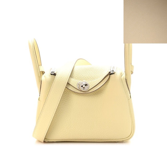 エルメス ミニリンディ 20 ヴェルソ ジョーヌミルトン ベトン トリヨンクレマンス シルバー金具 HERMES MINI LINDY 20 VERSO JAUNE MILTON BETON TAURILLON CLEMENCE GOLD HARDWARE