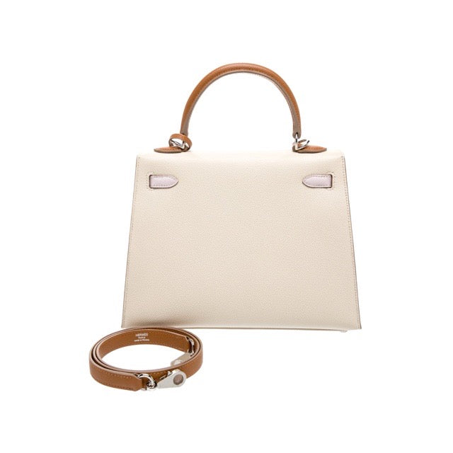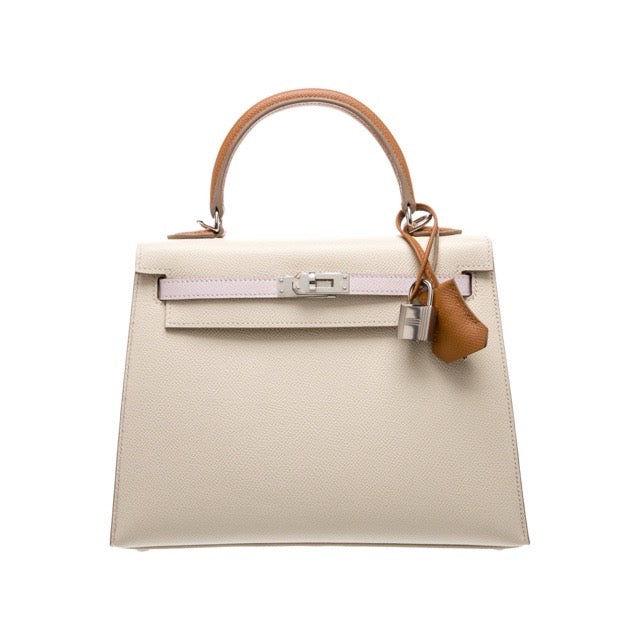 エルメス ケリー25 外縫い トリコロール クレ ゴールド モーヴペール エプソン シルバー金具 HERMES KELLY 25 SELLIER TRI-COLOR CRAIE GOLD MAUVE PALE EPSOM SILVER HARDWARE