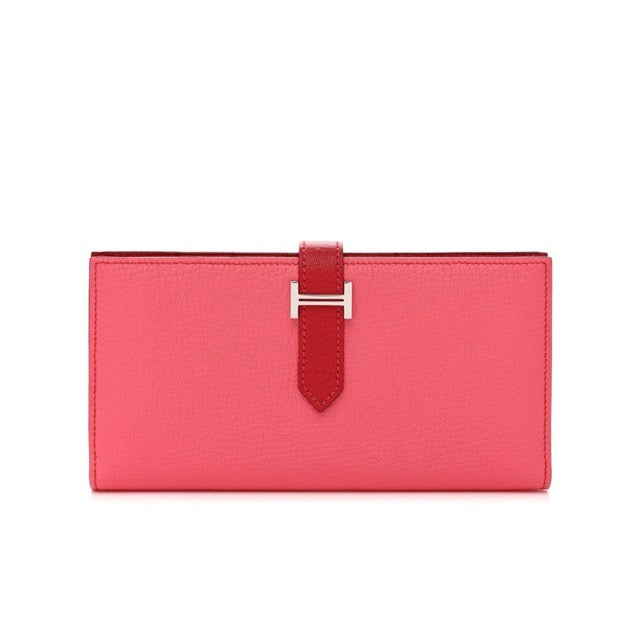 エルメス ベアンスフレ ベアンロングウォレット バイカラー ローズリップスティック ルージュカザック シェーブル シルバー金具 長財布 HERMES BEARN GUSSET WALLET ROSE LIPSTICK ROUGE CASAQUE CHEVRE SILVER HARDWARE【中古】