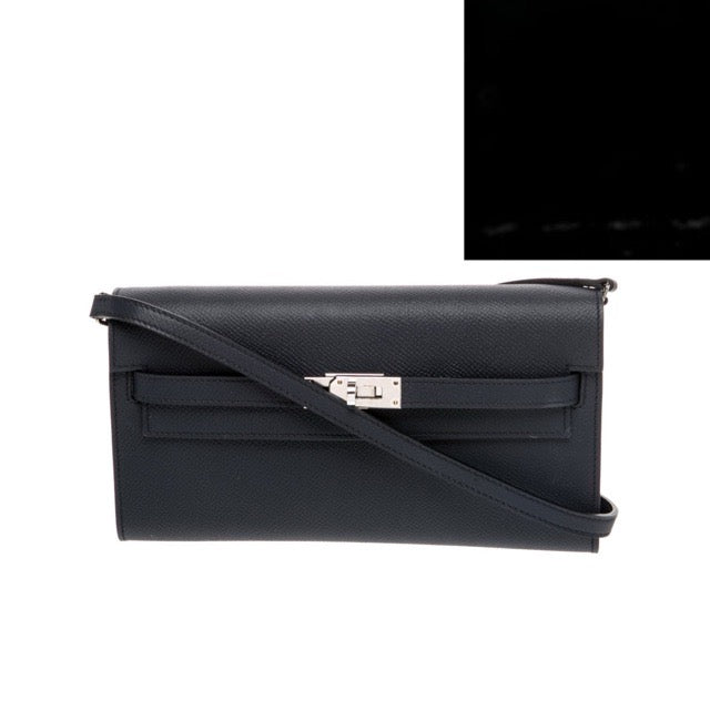 エルメス ケリーウォレット トゥーゴー 長財布 ヴェルソ ブルーインディゴ ブラック エプソン シルバー金具 HERMES KELLY WALLET TO GO VERSO BLEU INDIGO BLACK EPSOM SILVER HARDWARE【中古】