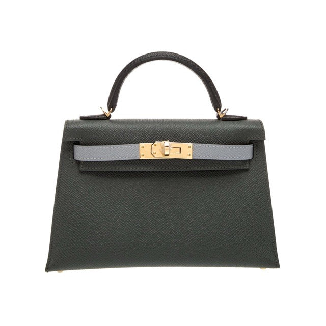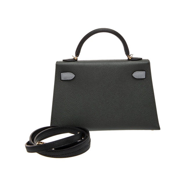 エルメス ミニケリー ケリーミニ2 ミニドゥ 外縫い トリコロール ヴェールマングローブ ブラック ノワール グリパンタン エプソン パーマブラス シャンパンゴールド金具 HERMES MINI KELLY 2 SELLIER 20 TRI-COLOR VERT MANGROVE BLACK NOIR GRIS PANTIN EPSOM PERMABRASS GOLD HARDWARE