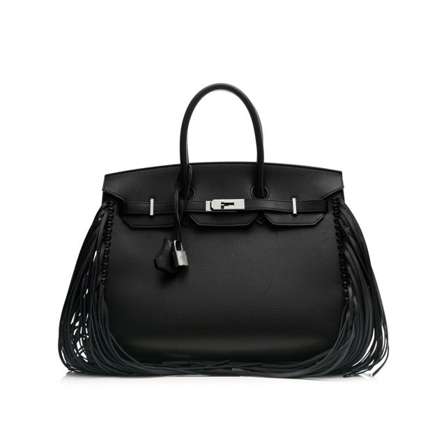 エルメス バーキン35 セリエ 外縫い アナーテ フリンジ ブラック エヴァーグレイン エバーグレイン シルバー金具 HERMES BIRKIN 35 SELLIER ANATE FRINGED BLACK EVERGRAIN SILVER HARDWARE