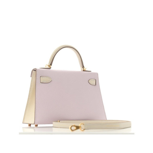エルメス ミニケリー ケリーミニ2 ミニドゥ 外縫い スペシャルオーダー バイカラー モーヴペール クレ エプソン ゴールド金具 パーソナルオーダー ホースシュー HERMES KELLY MINI 2 SELLIER 20 MAUVE PALE CRAIE EPSOM GOLD HARDWARE HSS