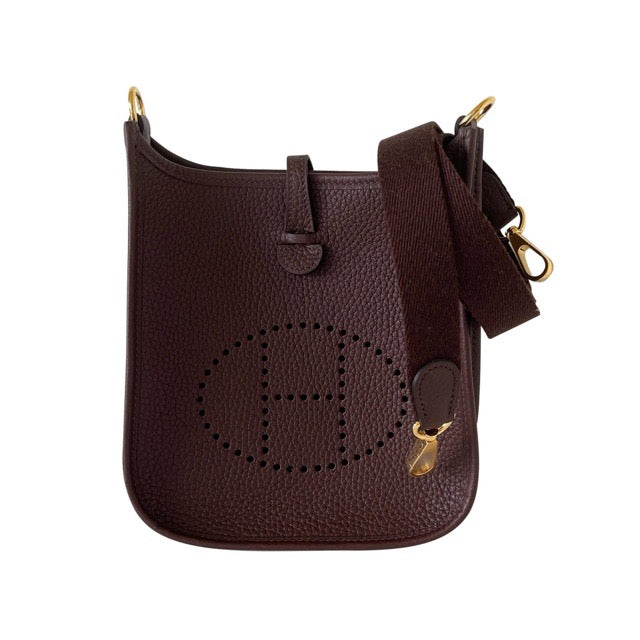 エルメス ミニエヴリン TPM エベンヌ エベーヌ トリヨンクレマンス ゴールド金具 ショルダーバッグ HERMES EVELYNE TPM EBENE TAURILLON CLEMENCE GOLD HARDWARE