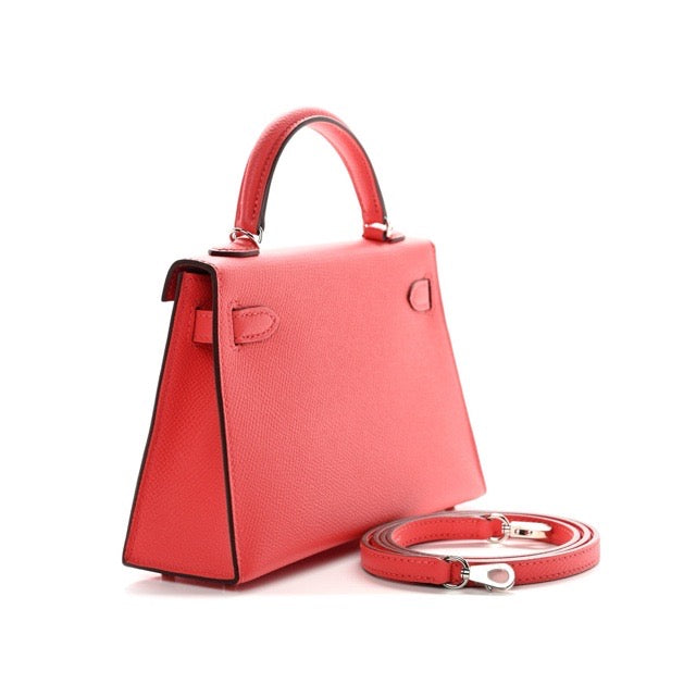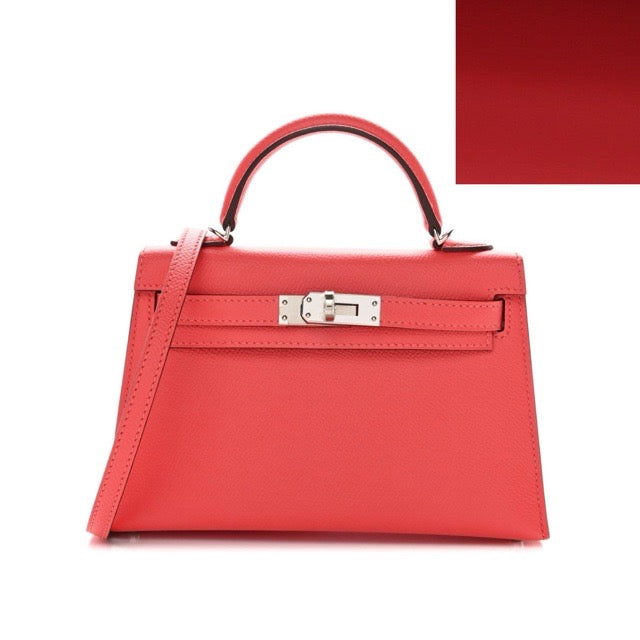 エルメス ミニケリー ケリーミニ2 ミニドゥ 外縫い ヴェルソ ローズジャイプール ルージュヴィフ エプソン シルバー金具 HERMES KELLY MINI 2 SELLIER 20 VERSO ROSE JAIPUR ROUGE VIF EPSOM SILVER HARDWARE【中古】
