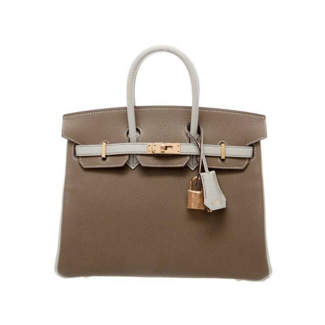 エルメス バーキン25 スペシャルオーダー バイカラー エトゥープ パールグレー グリペール シェーブル ローズゴールド金具 ピンクゴールド金具 パーソナルオーダー ホースシュー HERMES BIRKIN 25 ETOUPE GRIS PERLE CHEVRE ROSE GOLD PINK GOLD HARDWARE HSS