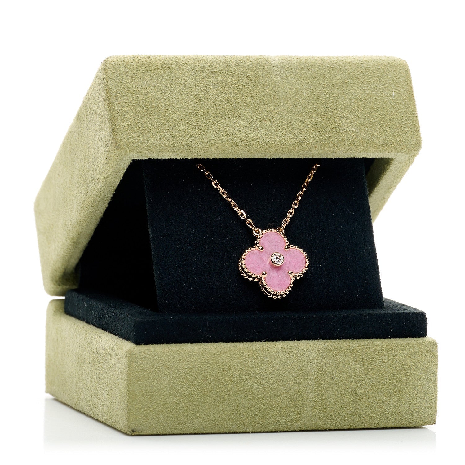 VAN CLEEF 18Kローズゴールド ダイヤモンド ロードナイト ヴィンテージ アルハンブラ ペンダントネックレス