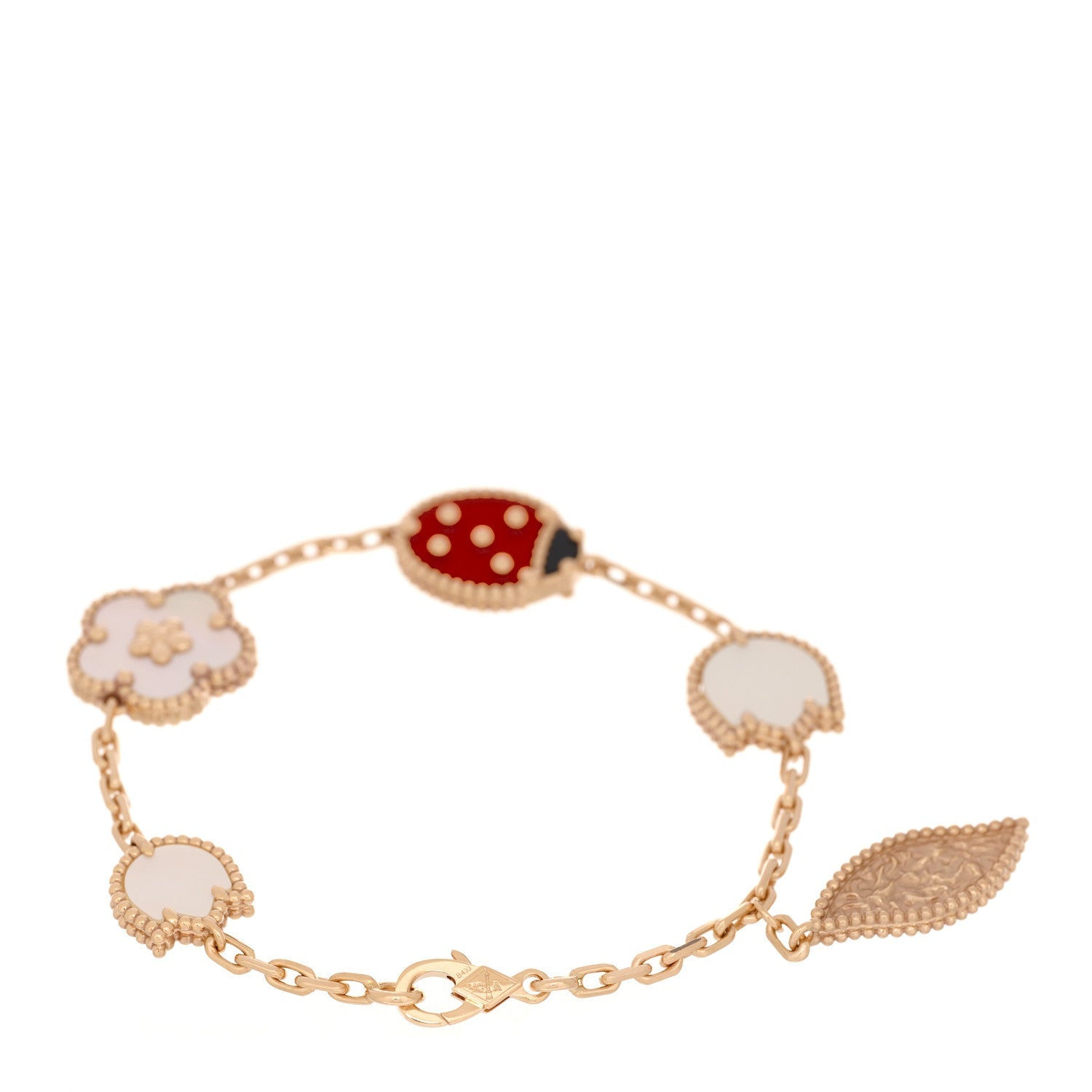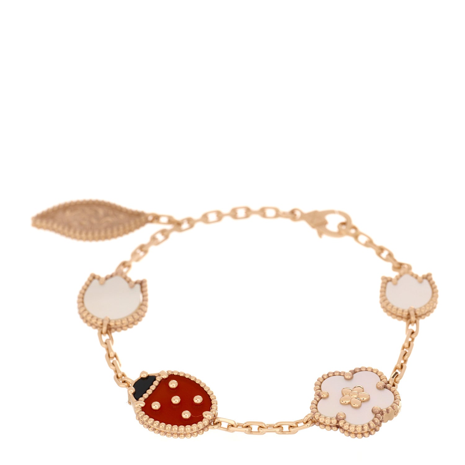 VAN CLEEF 18Kローズゴールド カーネリアン マザーオブパール オニキス 5モチーフ ラッキースプリングブレスレット
