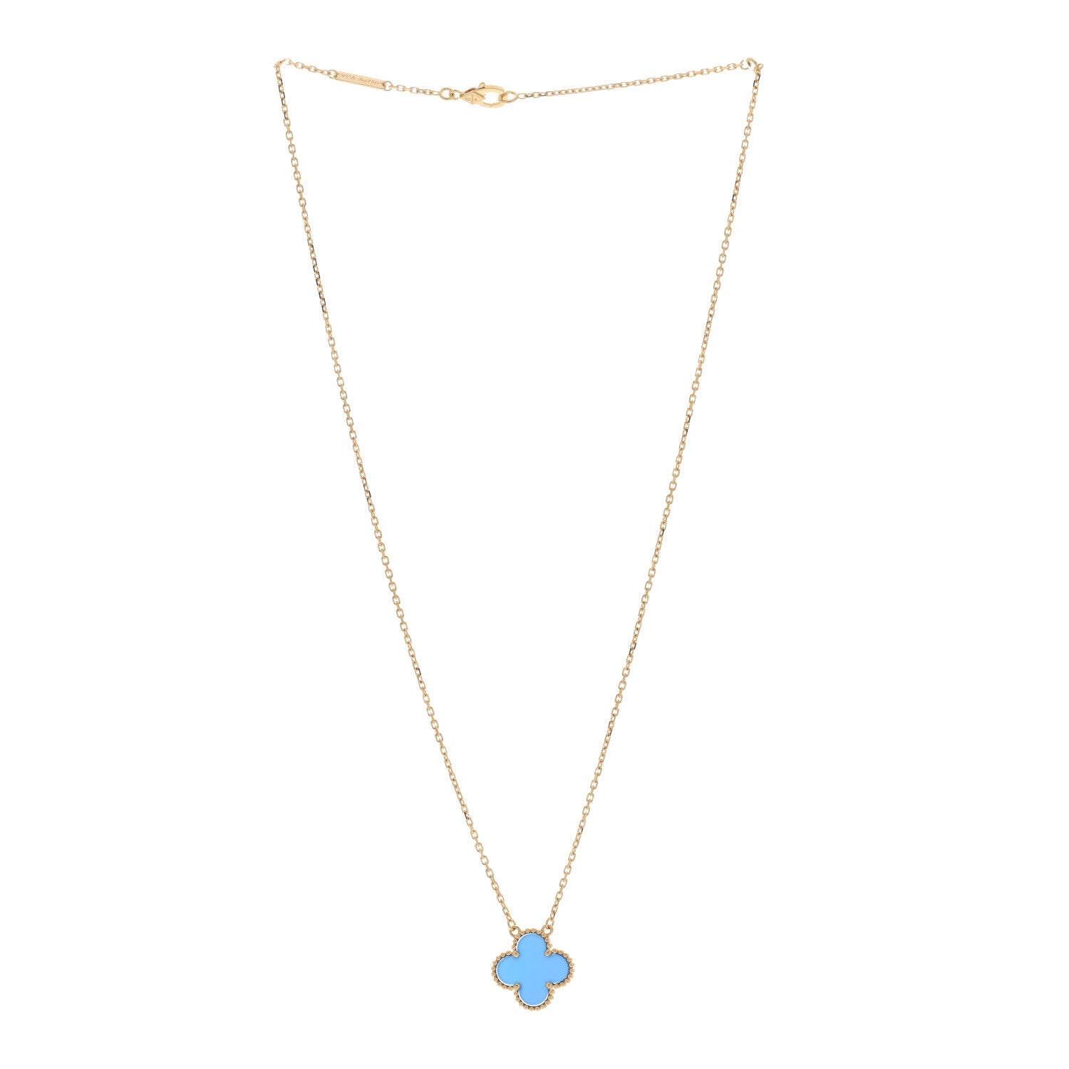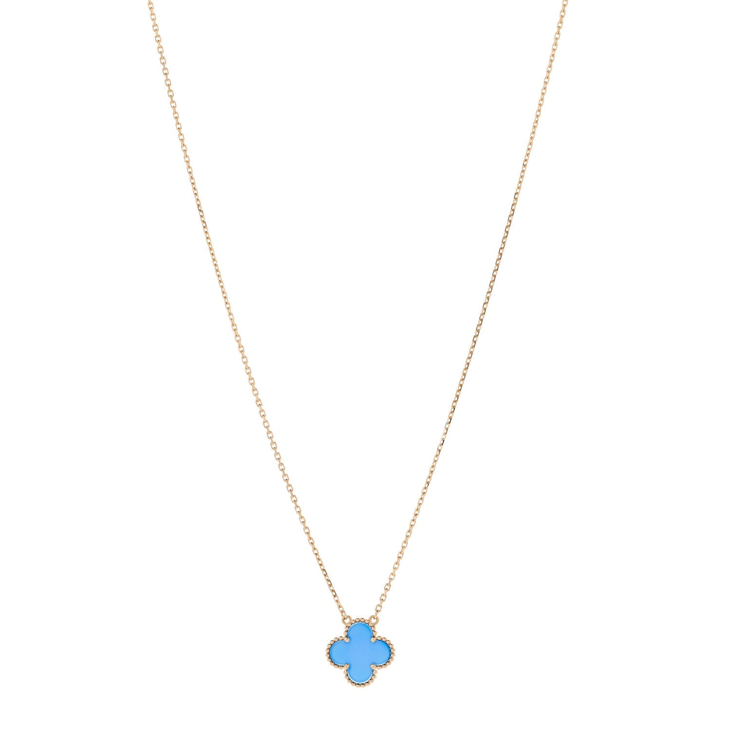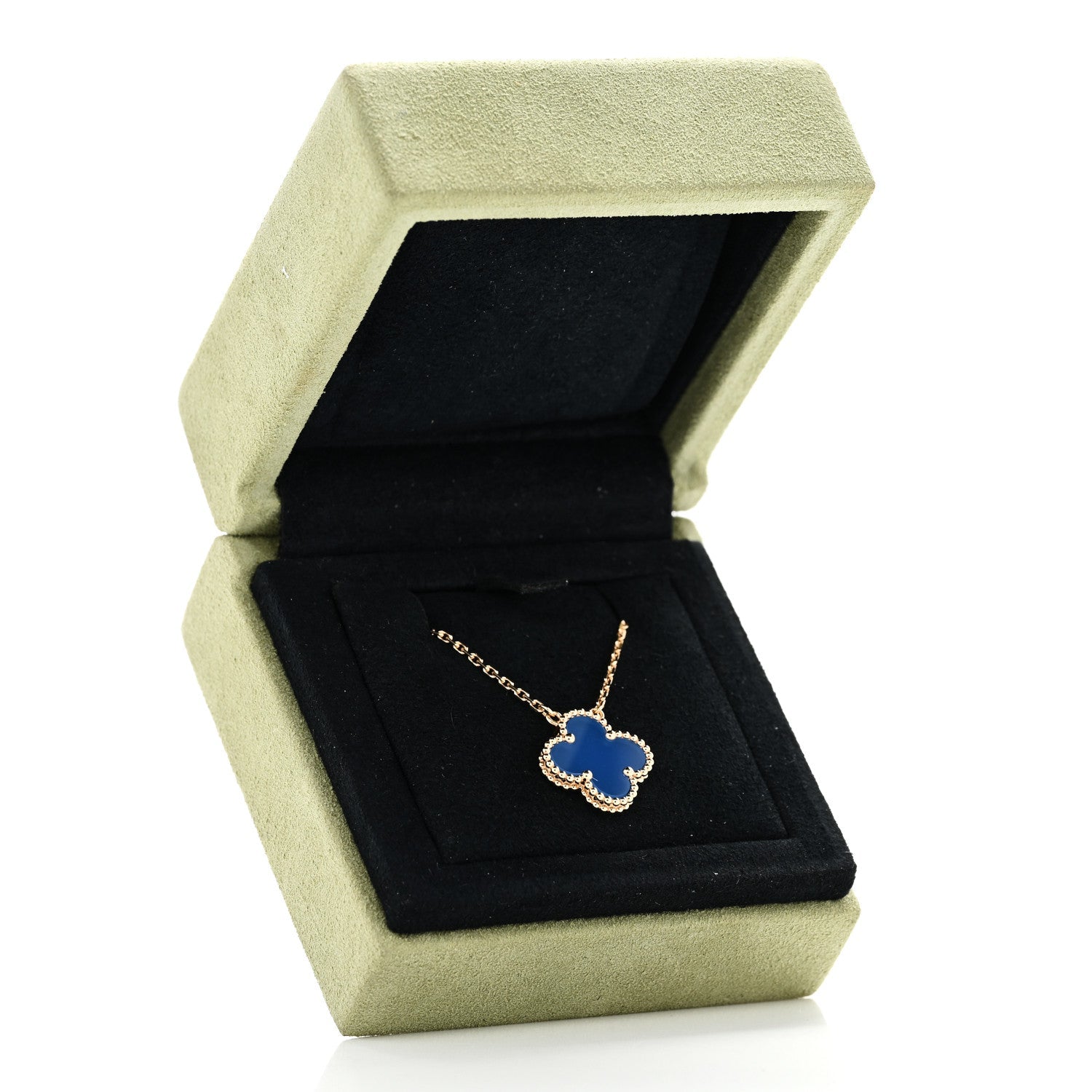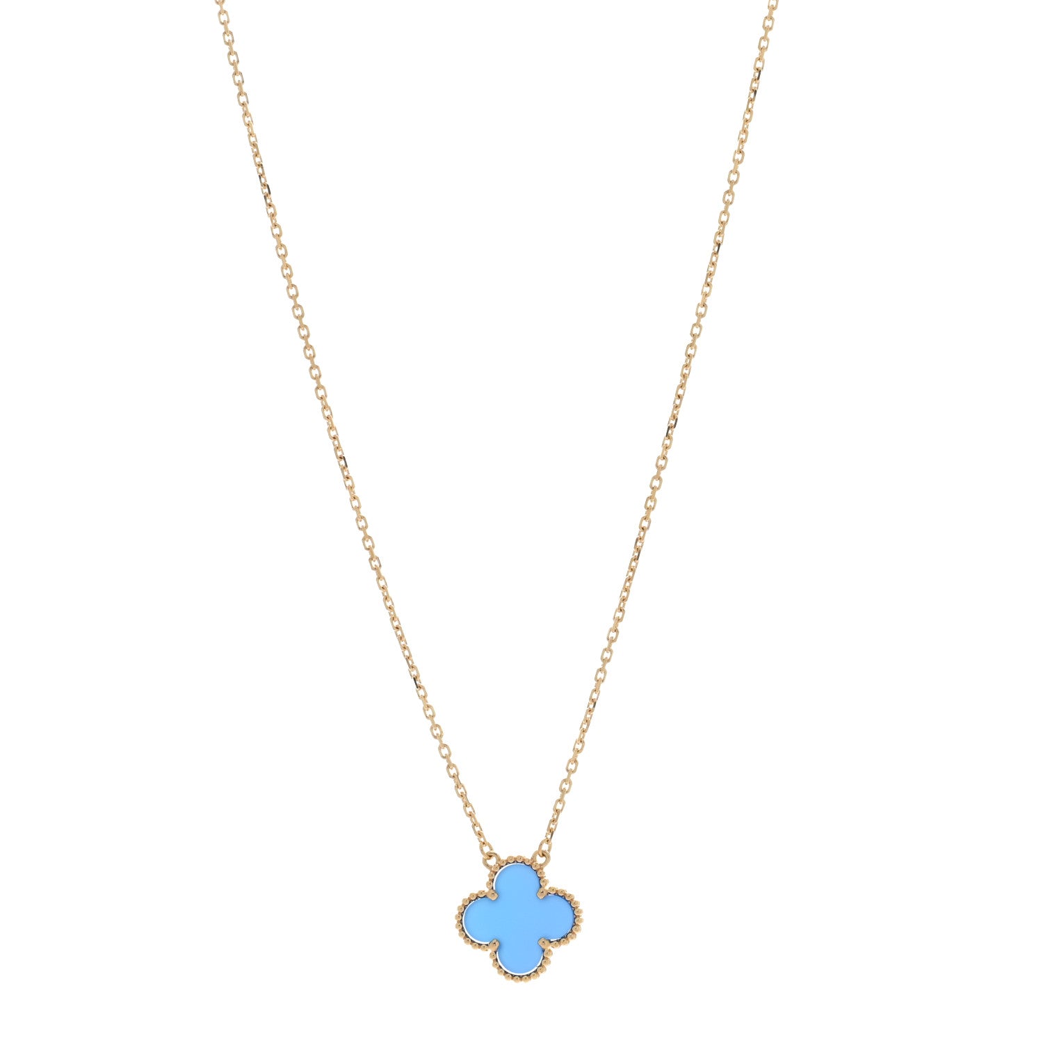 VAN CLEEF 18Kイエローゴールド ブルーアゲート ヴィンテージ アルハンブラ ペンダントネックレス