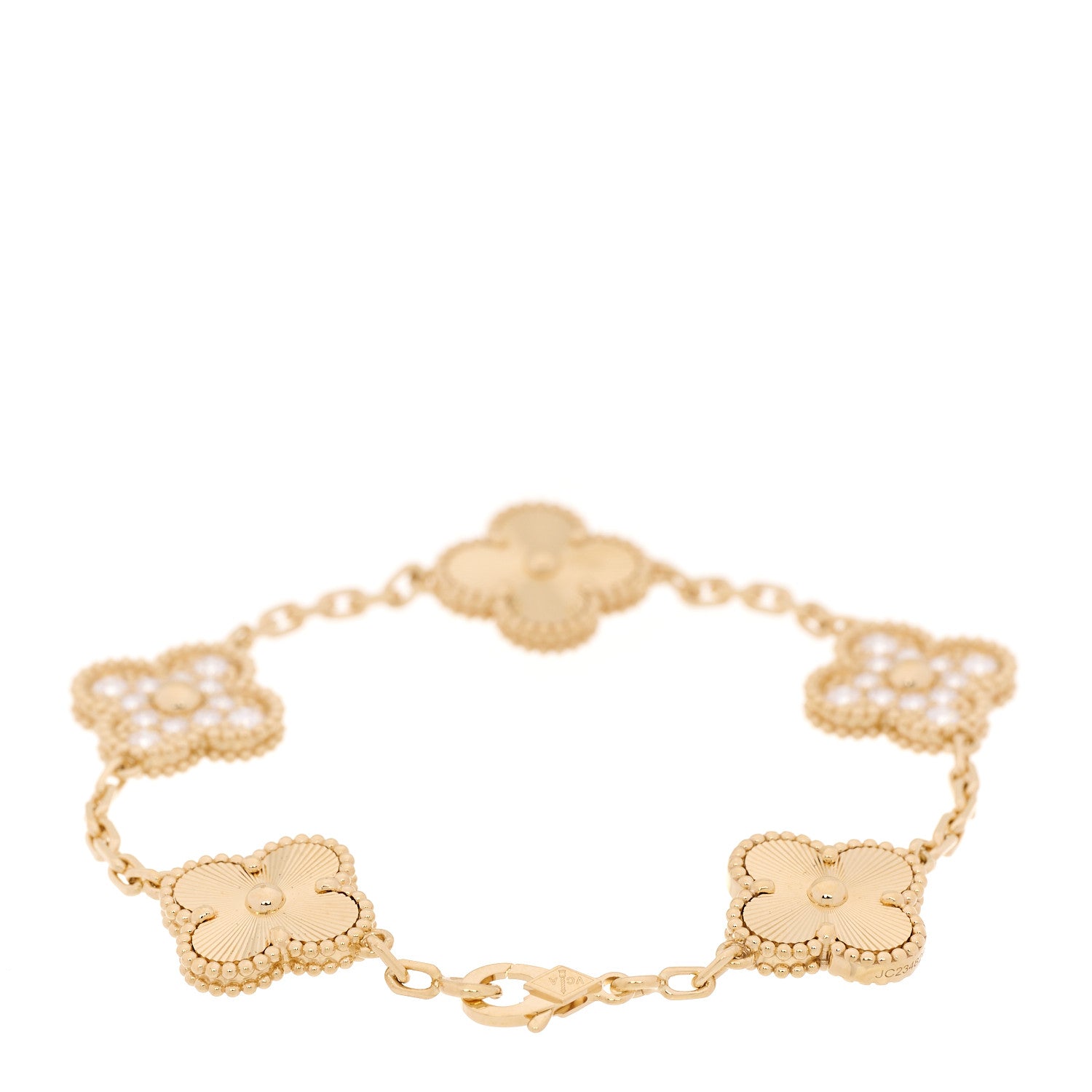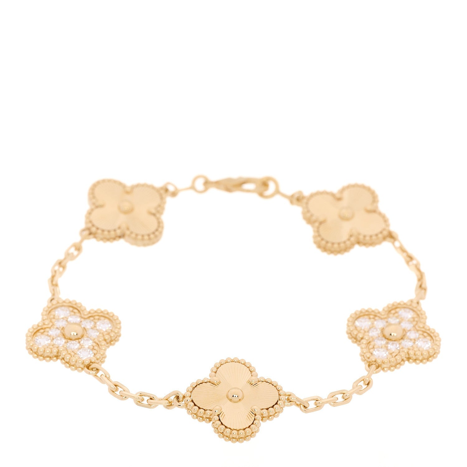 VAN CLEEF 18Kイエローゴールド ダイヤモンド 5モチーフ ギョーシェ ヴィンテージ アルハンブラ ブレスレット