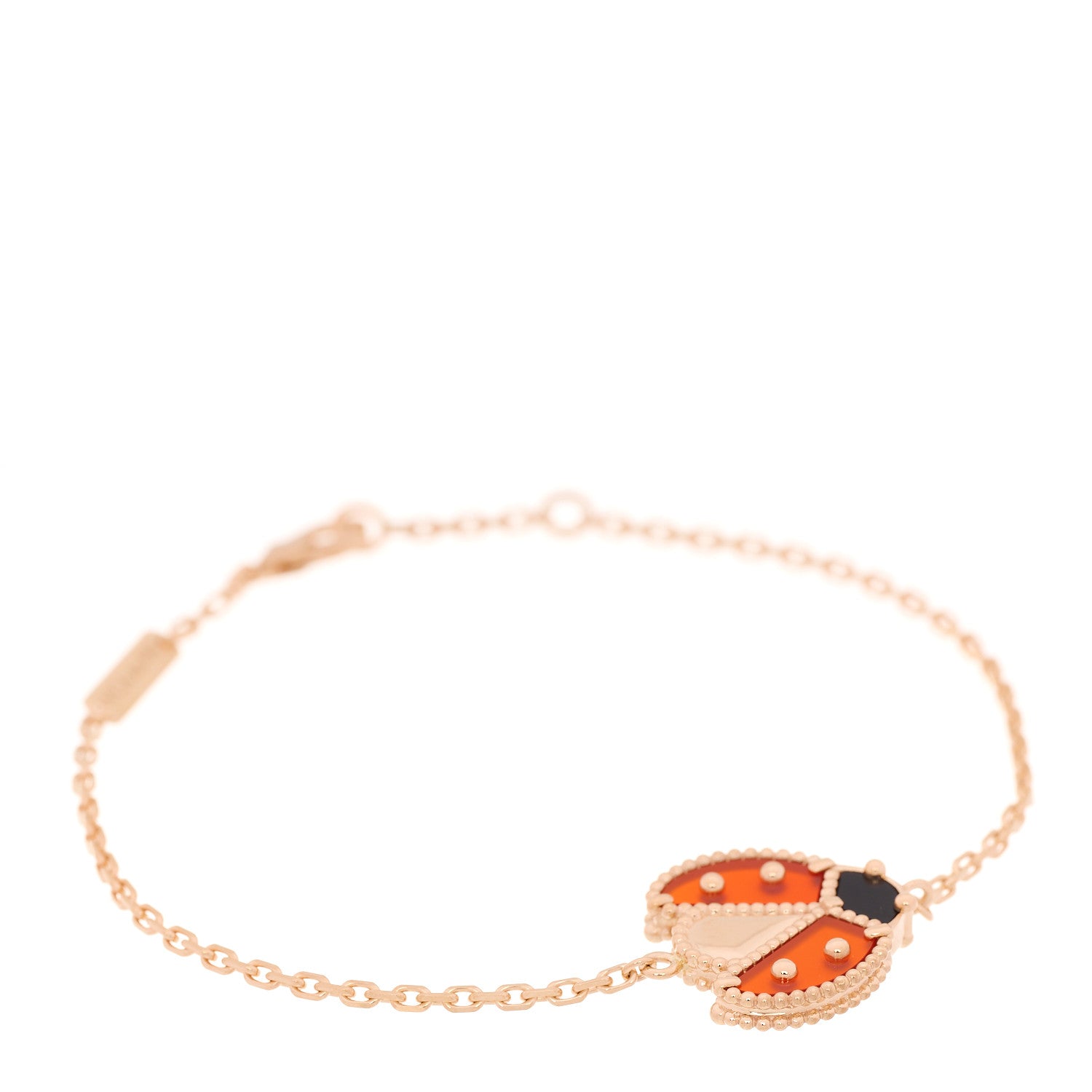 VAN CLEEF 18Kローズゴールド カーネリアン オニキス ラッキースプリング オープンウィング てんとう虫ブレスレット