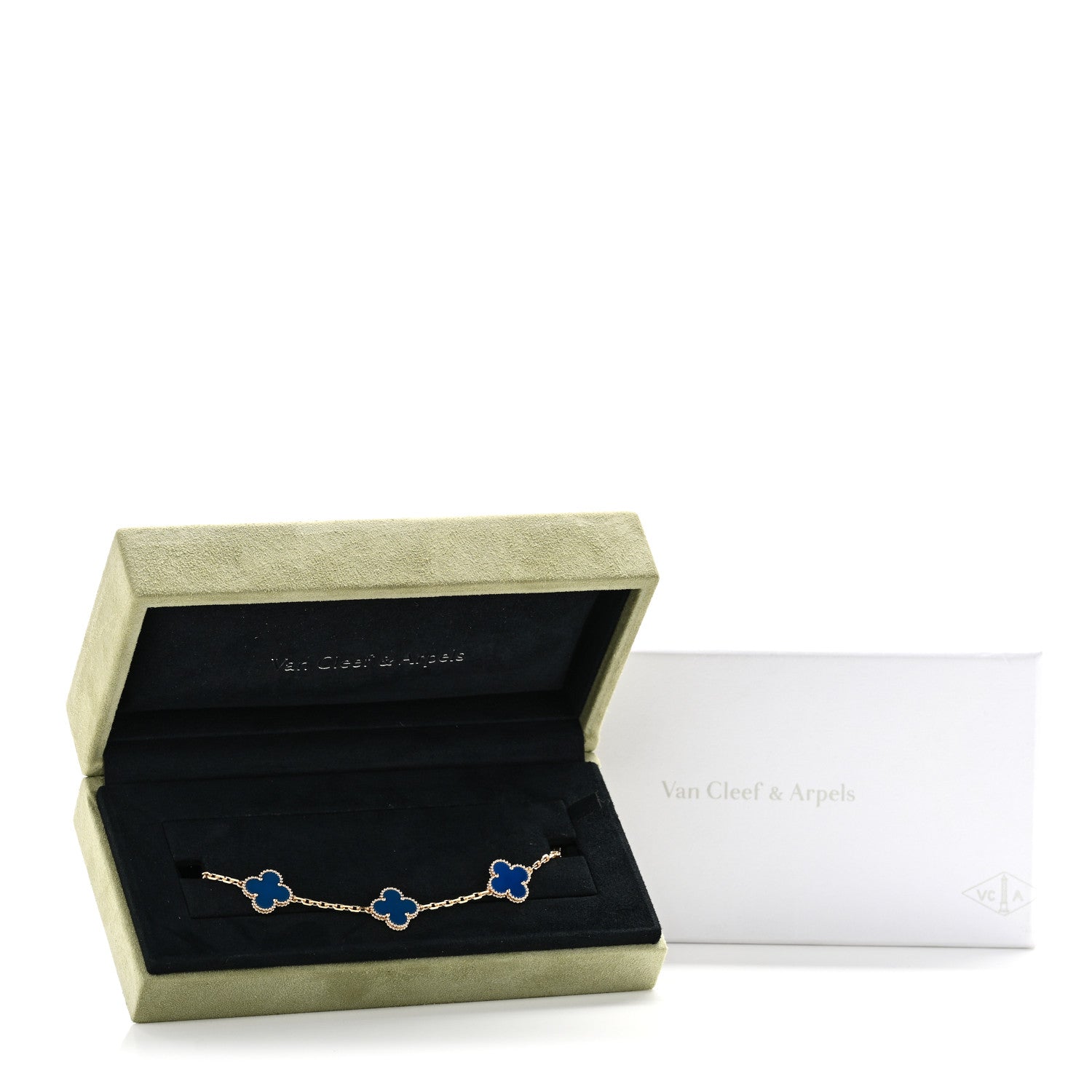VAN CLEEF 18Kイエローゴールド ブルーアゲート 5モチーフ ヴィンテージ アルハンブラ ブレスレット