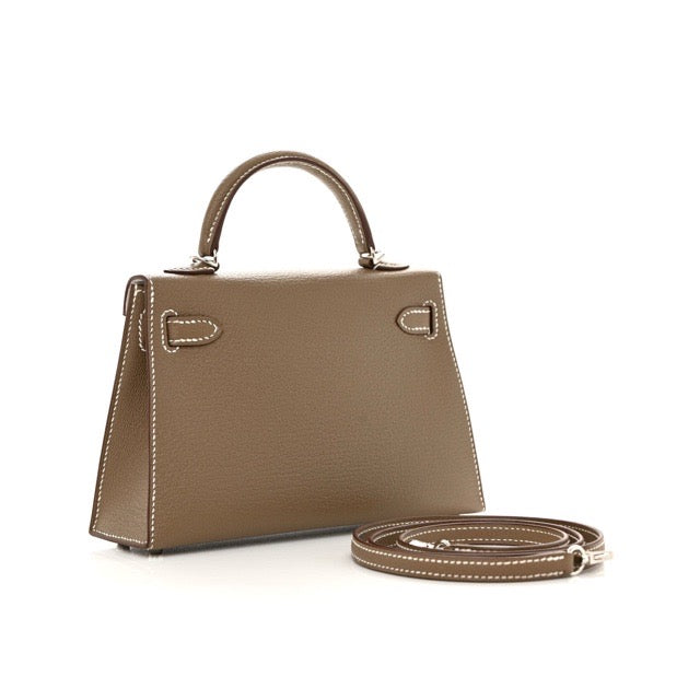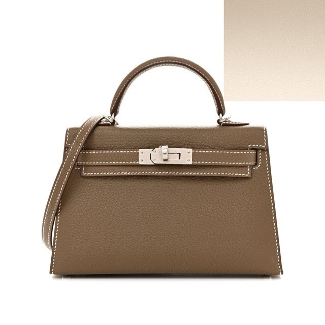 エルメス ミニケリー ケリーミニ2 ミニドゥ 外縫い ヴェルソ エトゥープ ニューホワイト シェーブル シルバー金具 HERMES MINI KELLY 2 SELLIER 20 VERSO ETOUPE NEW WHITE CHEVRE SILVER HARDWARE