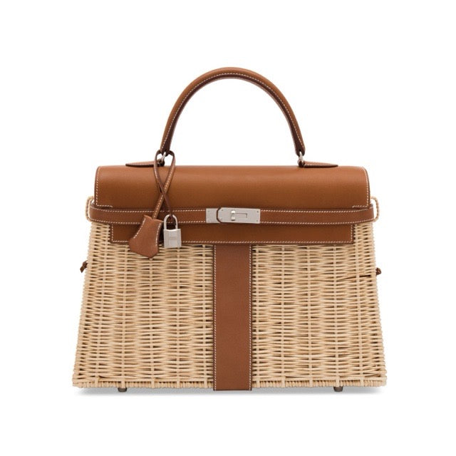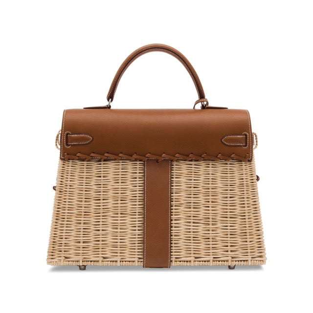 エルメス ケリー35 ピクニック カゴバッグ ナチュラル フォーブ バレニアフォーブル 柳 シルバー金具 HERMES KELLY 35 PICNIC NATURAL FAUVE BARENIA FAUBOURG WICKER SILVER HARDWARE
