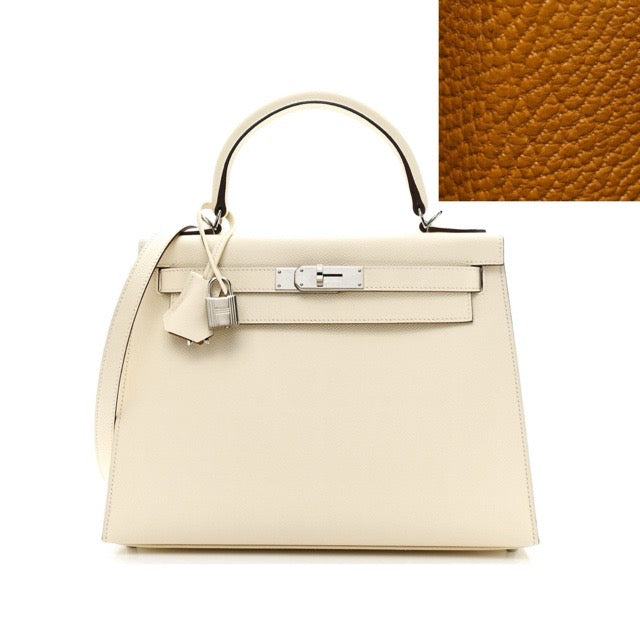 エルメス ケリー28 外縫い ヴェルソ ナタ オークル エプソン シルバー金具 HERMES KELLY 28 SELLIER VERSO NATA OCRE EPSOM SILVER HARDWARE