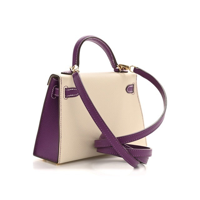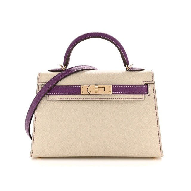 エルメス ミニケリー ケリーミニ2 ミニドゥ 外縫い スペシャルオーダー バイカラー クレ アネモネ エプソン シャンパンゴールド金具 パーソナルオーダー ホースシュー HERMES KELLY MINI 2 SELLIER 20 CRAIE ANEMONE EPSOM PERMABRASS GOLD HARDWARE HSS【中古】