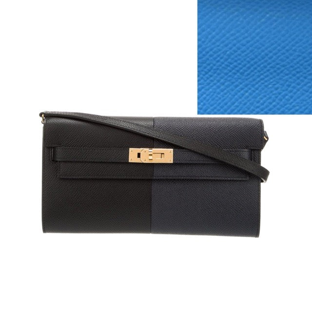 エルメス ケリーウォレット カザック トゥーゴー ブラック ブルーインディゴ ブルーフリーダ エプソン ゴールド金具 HERMES KELLY CASAQUE WALLET TO GO BLACK BLEU INDIGO BLEU FRIDA EPSOM GOLD HARDWARE【中古】