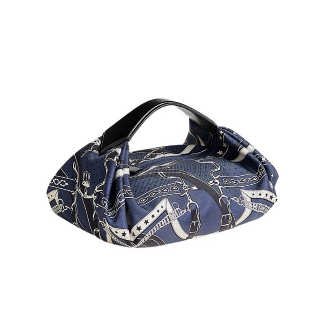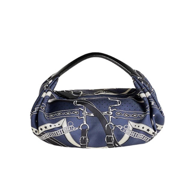 エルメス バリュソワ バルソワ ハンドバッグ 朝の散歩・バンダナ ブルーインディゴ ブラック シルク ヴァッシュハンター シルバー金具 ポーチ HERMES BALUSOIE BAG POUCH LA PROMENADE DU MATIN BANDANA BLEU INDIGO BLACK SILK VACHE HUNTER SILVER HARDWARE