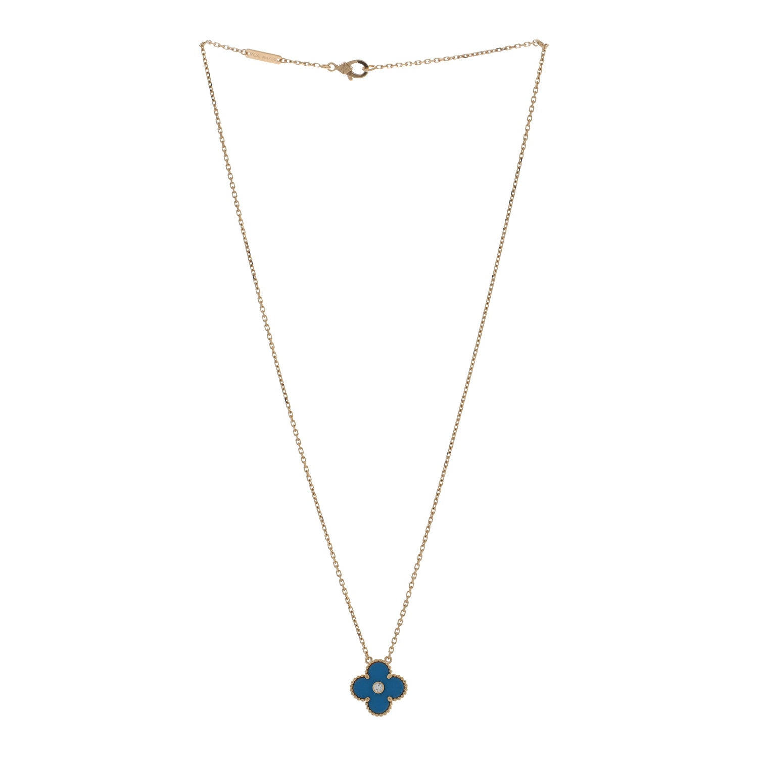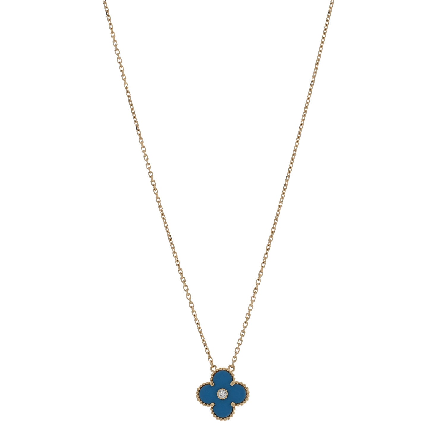 ヴァンクリーフ&アーペル 18Kイエローゴールド ダイヤモンド セレスティアルブルー セーヴル磁器 ヴィンテージ アルハンブラ ペンダントネックレス