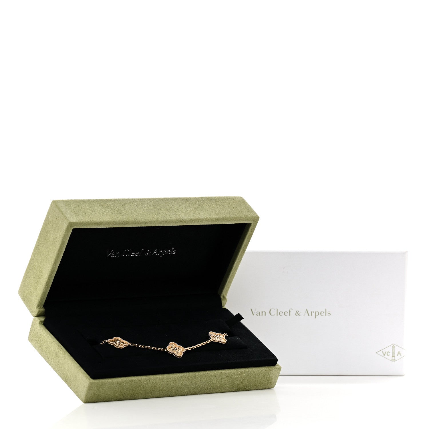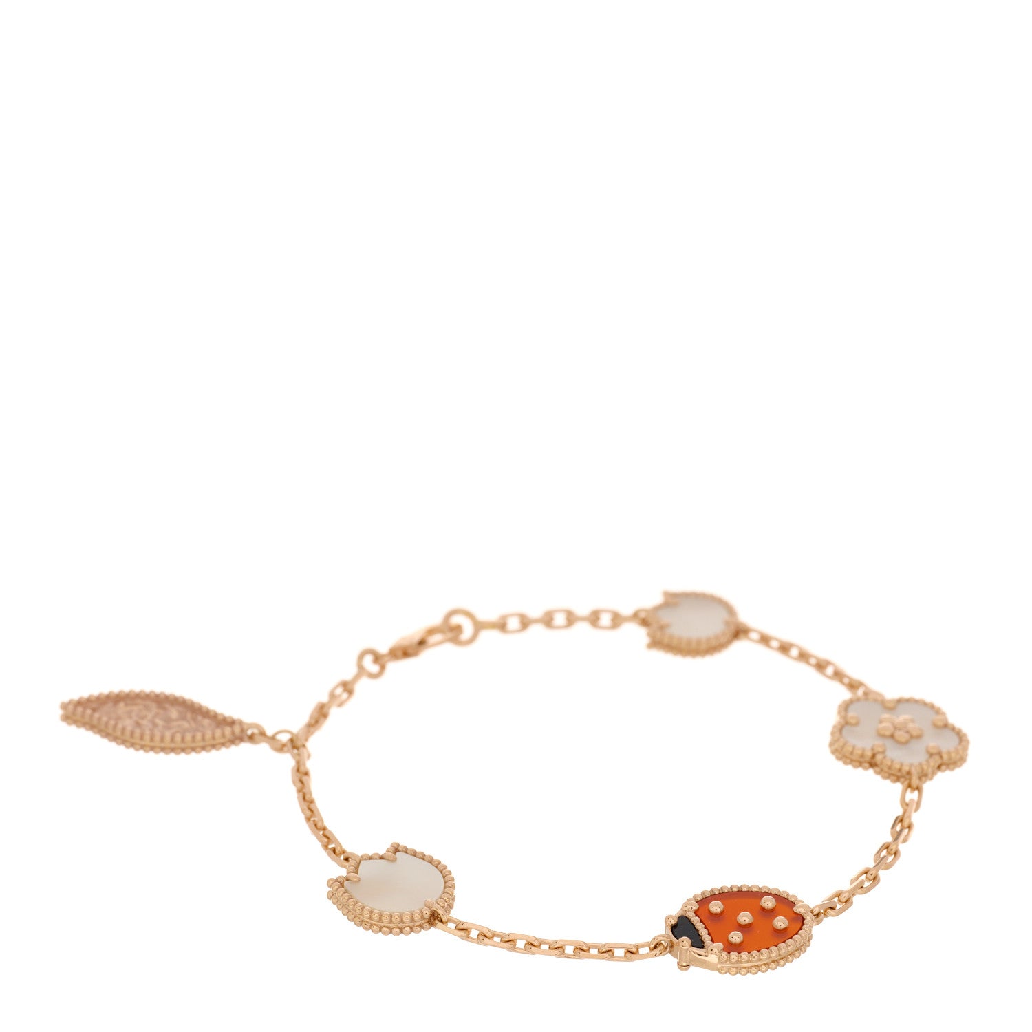 ヴァンクリーフ&アーペル 18Kローズゴールド カーネリアン マザーオブパール オニキス 5モチーフ ラッキースプリングブレスレット