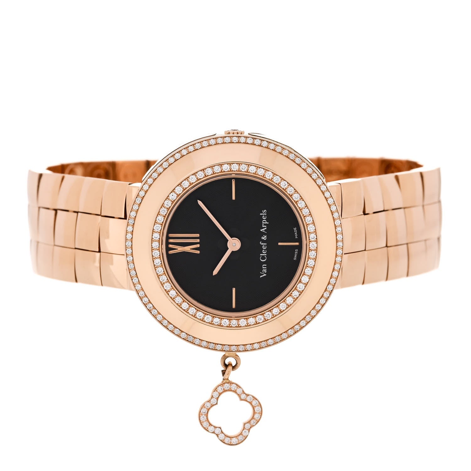 ヴァンクリーフ&アーペル 18Kローズゴールド ダイヤモンドベゼル 32mm チャーム クォーツウォッチ 腕時計 ブラック
