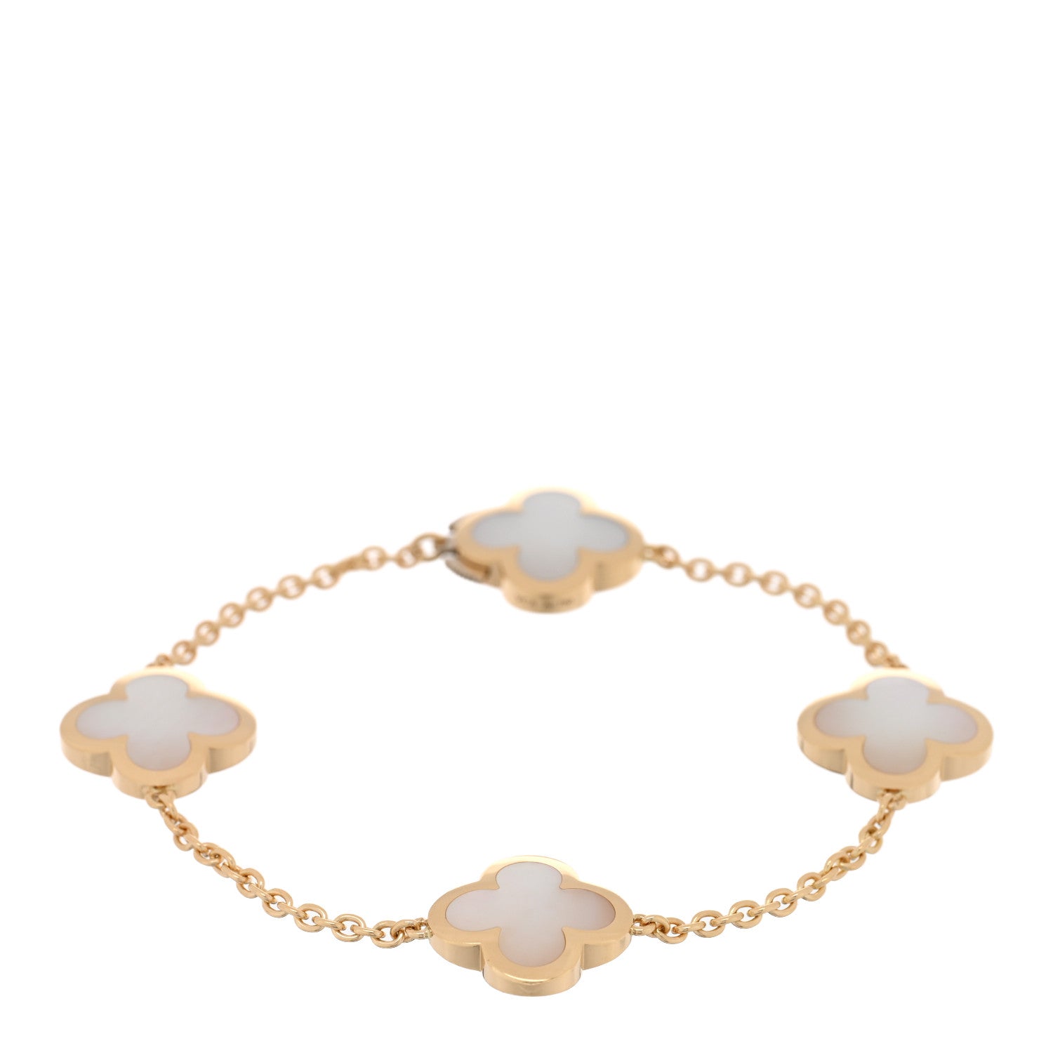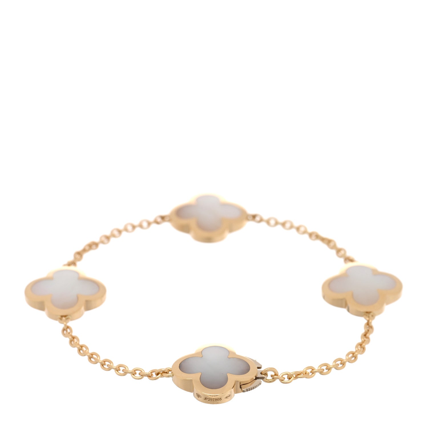 ヴァンクリーフ&アーペル 18Kイエローゴールド マザーオブパール 4モチーフ ピュアアルハンブラブレスレット
