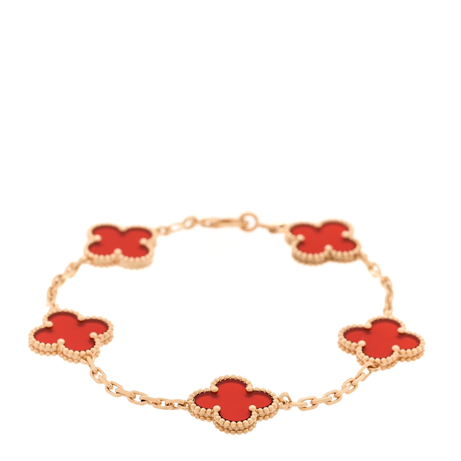 ヴァンクリーフ&アーペル 18Kイエローゴールド カーネリアン 5モチーフ ヴィンテージ アルハンブラ ブレスレット