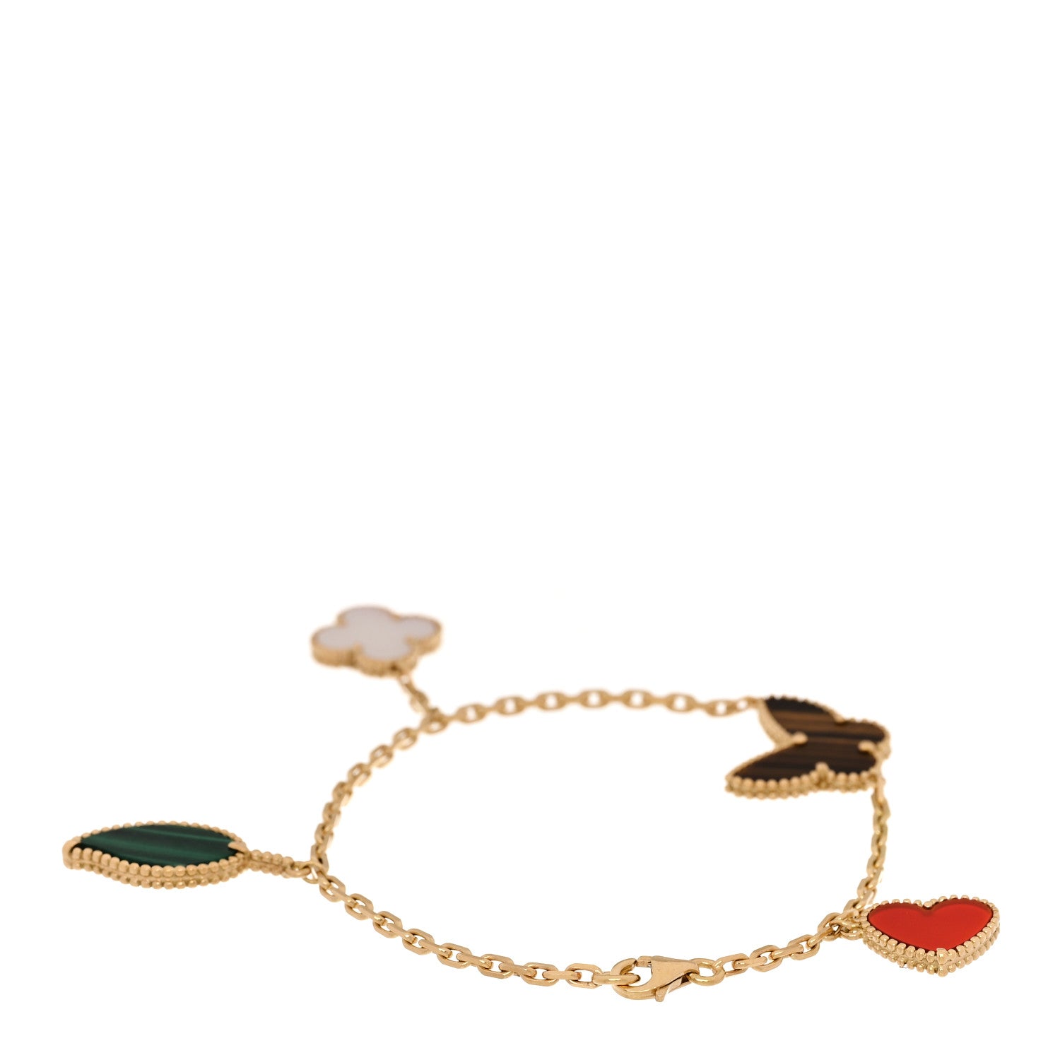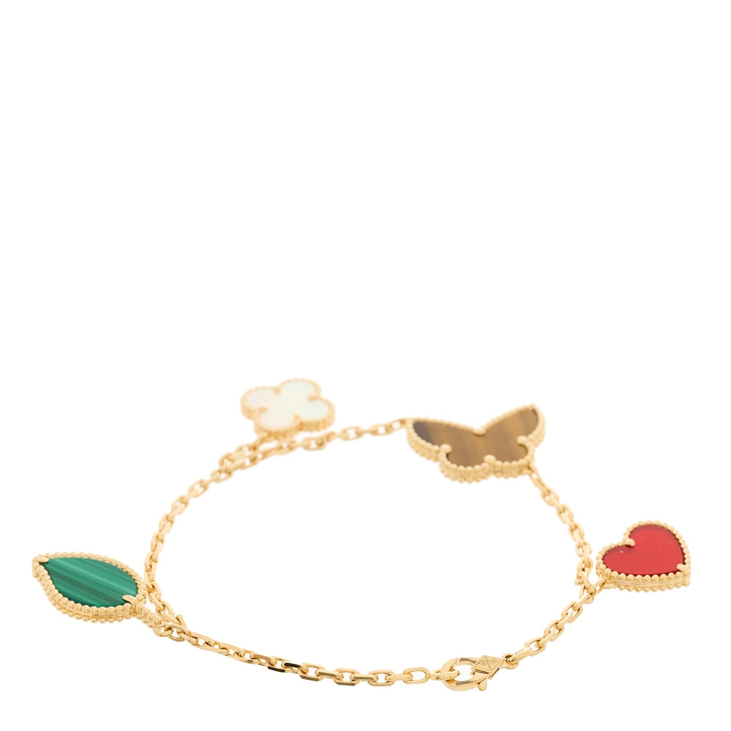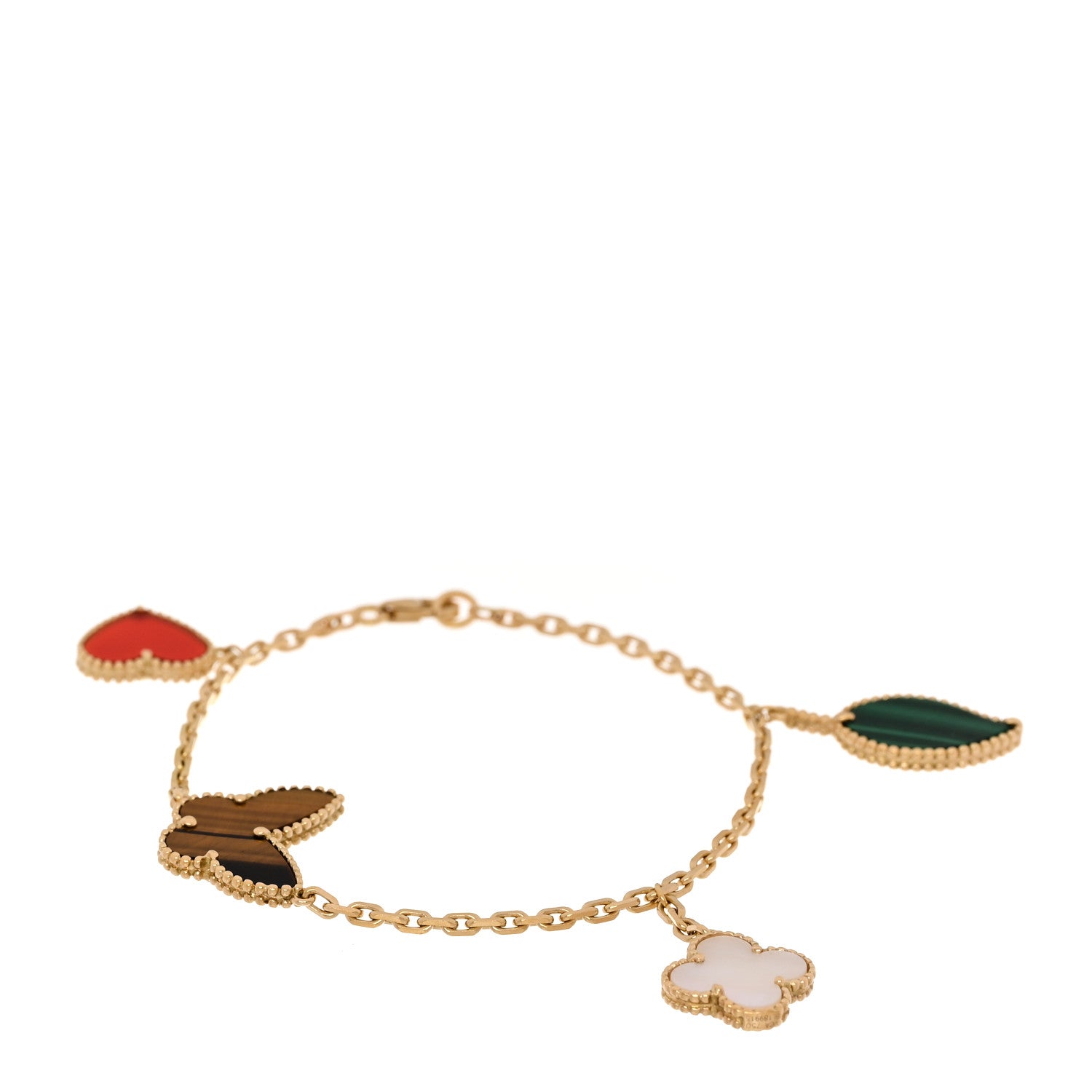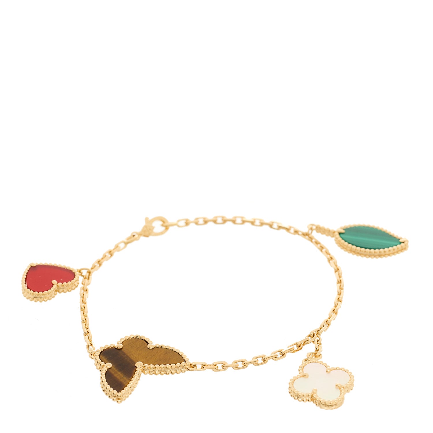 ヴァンクリーフ&アーペル 18Kイエローゴールド マザーオブパール マラカイト カーネリアン タイガーアイ 4モチーフ ラッキーアルハンブラブレスレット