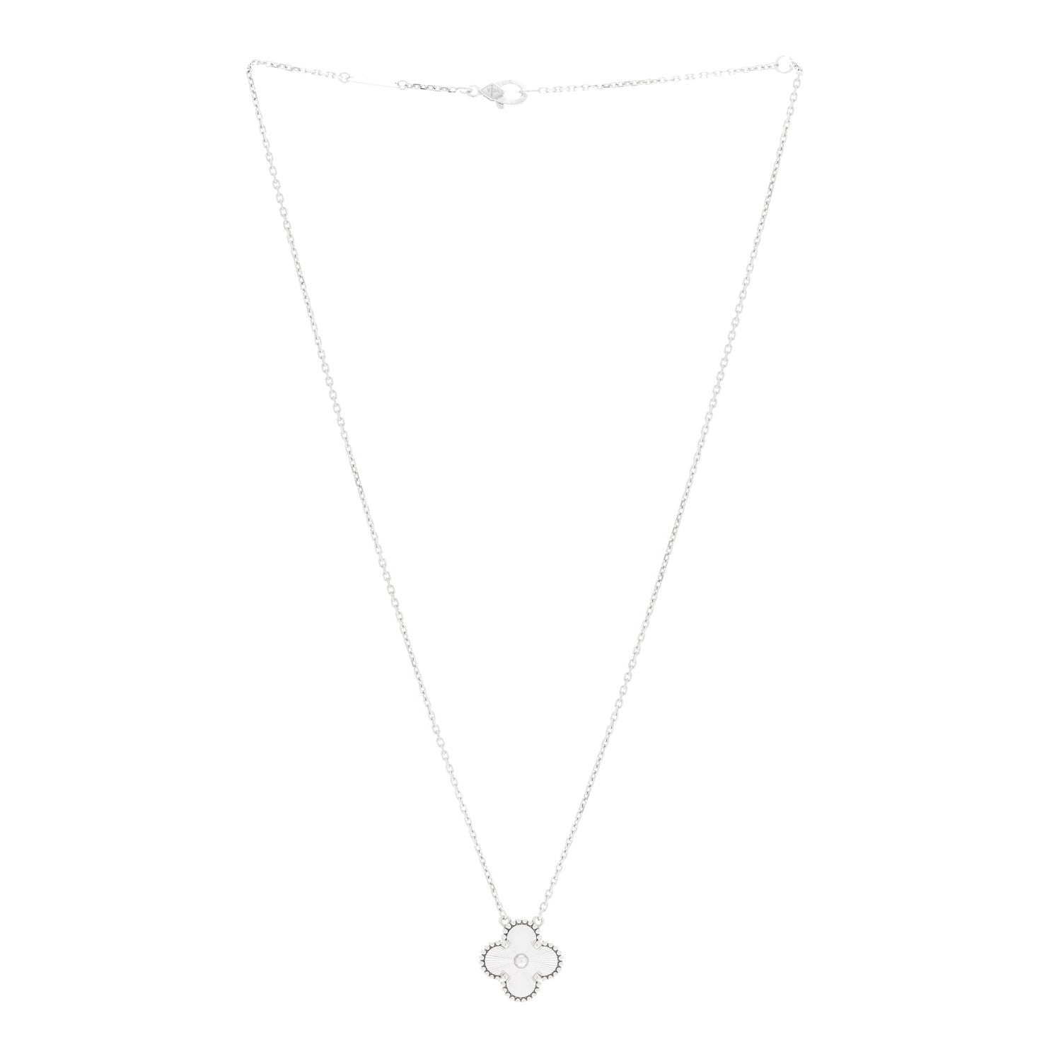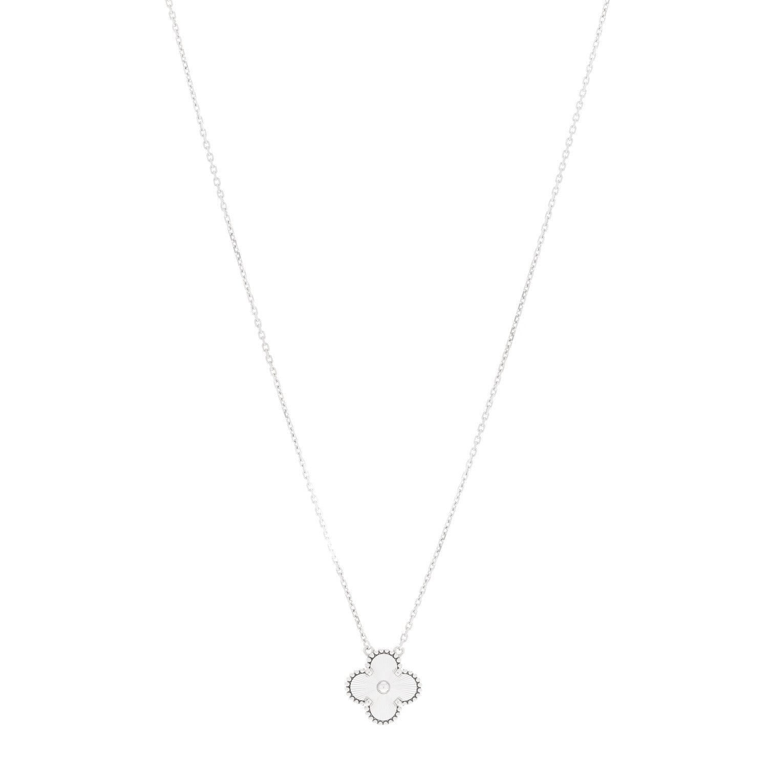 ヴァンクリーフ&アーペル 18Kホワイトゴールド カルセドニー ヴィンテージ アルハンブラ ペンダントネックレス