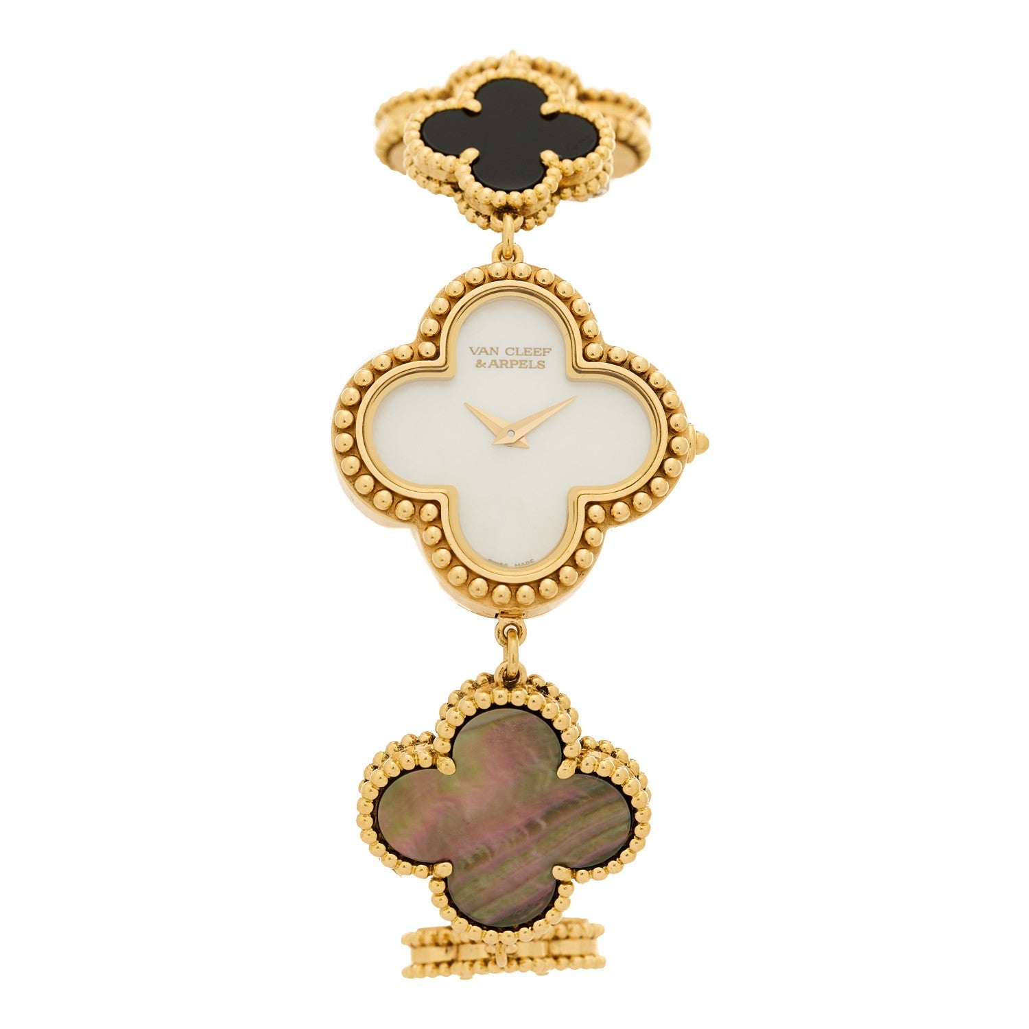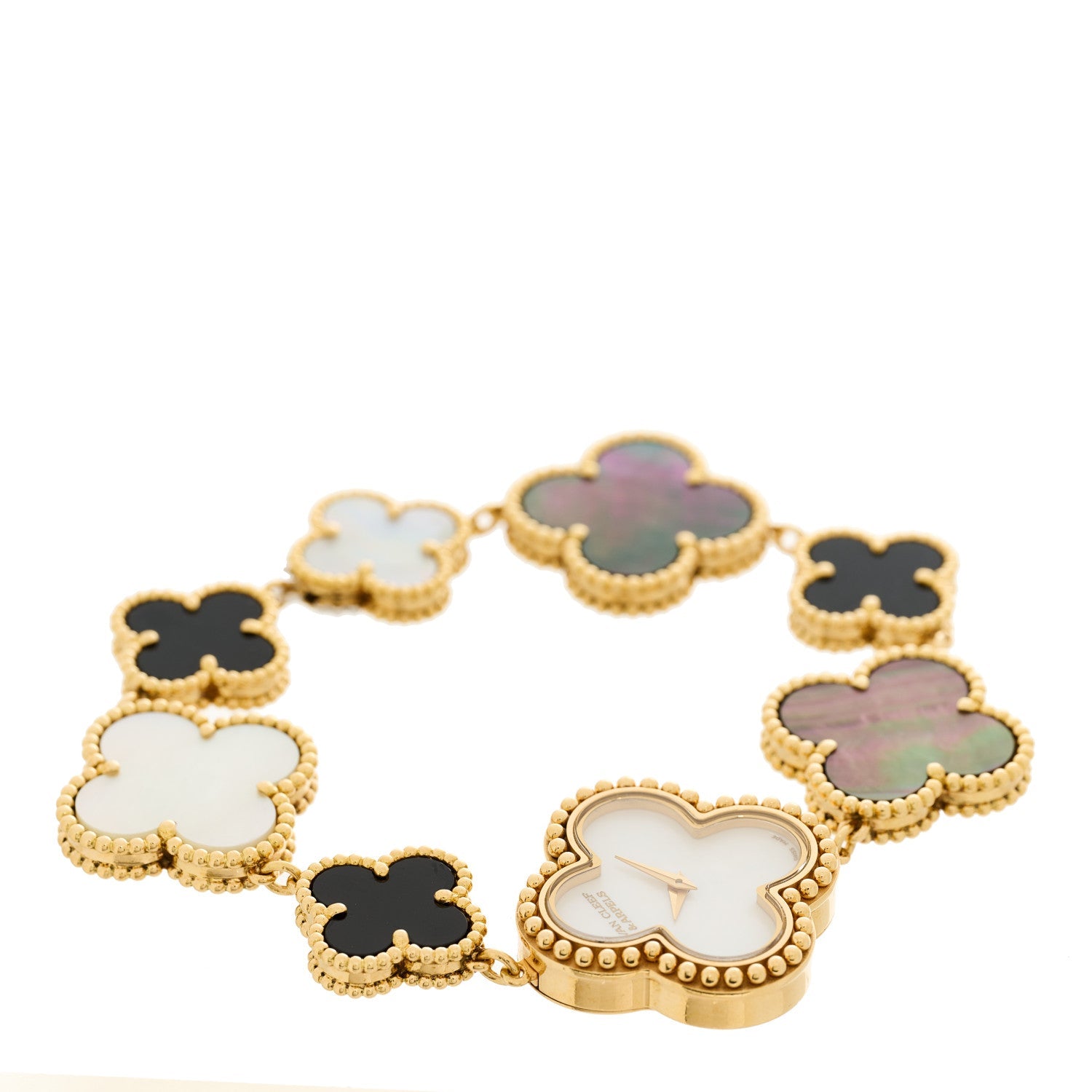 ヴァンクリーフ&アーペル 18Kイエローゴールド マザーオブパール ブラックオニキス 26mm アルハンブラ クォーツウォッチ 腕時計