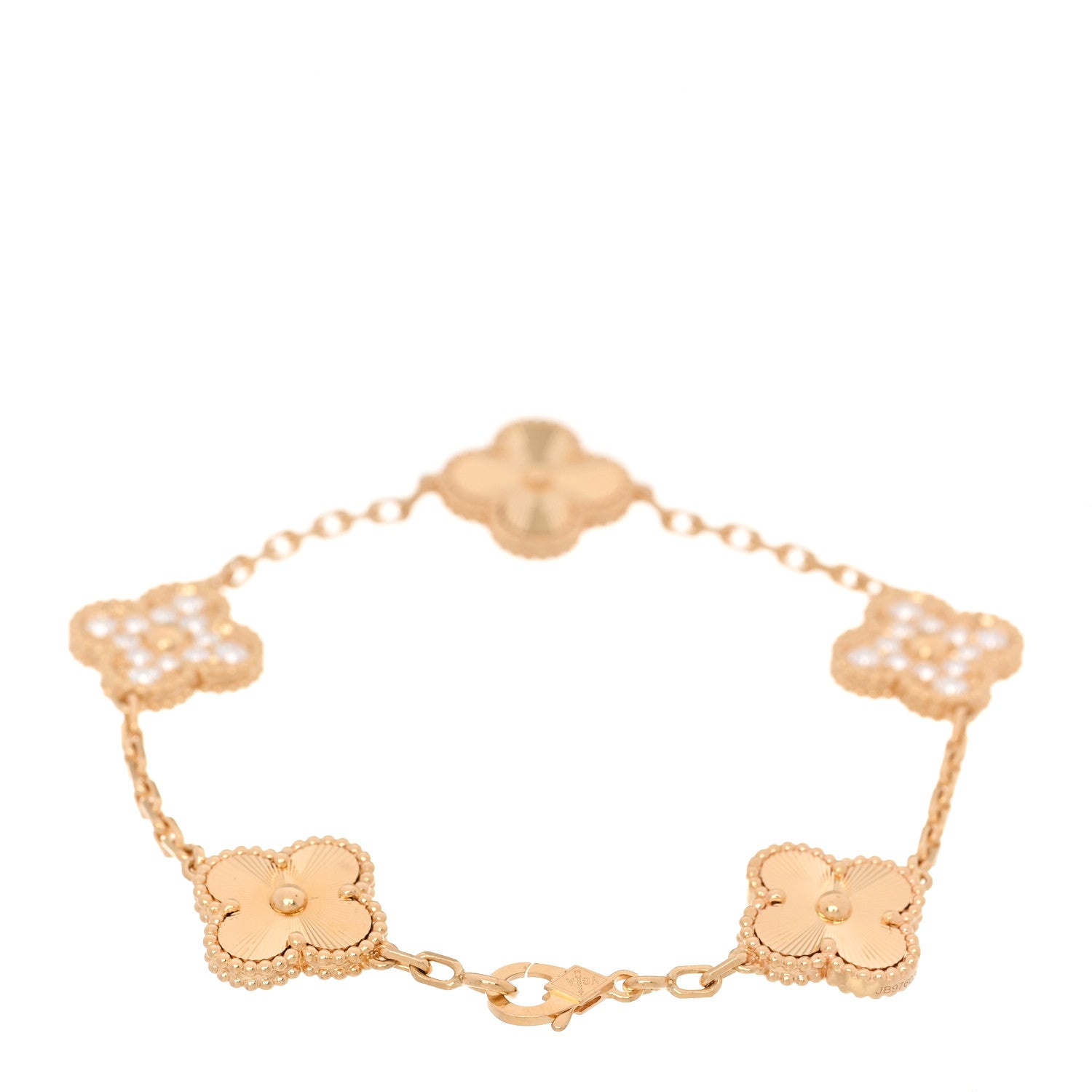 ヴァンクリーフ&アーペル 18Kイエローゴールド ダイヤモンド 5モチーフ ギョーシェ ヴィンテージ アルハンブラ ブレスレット