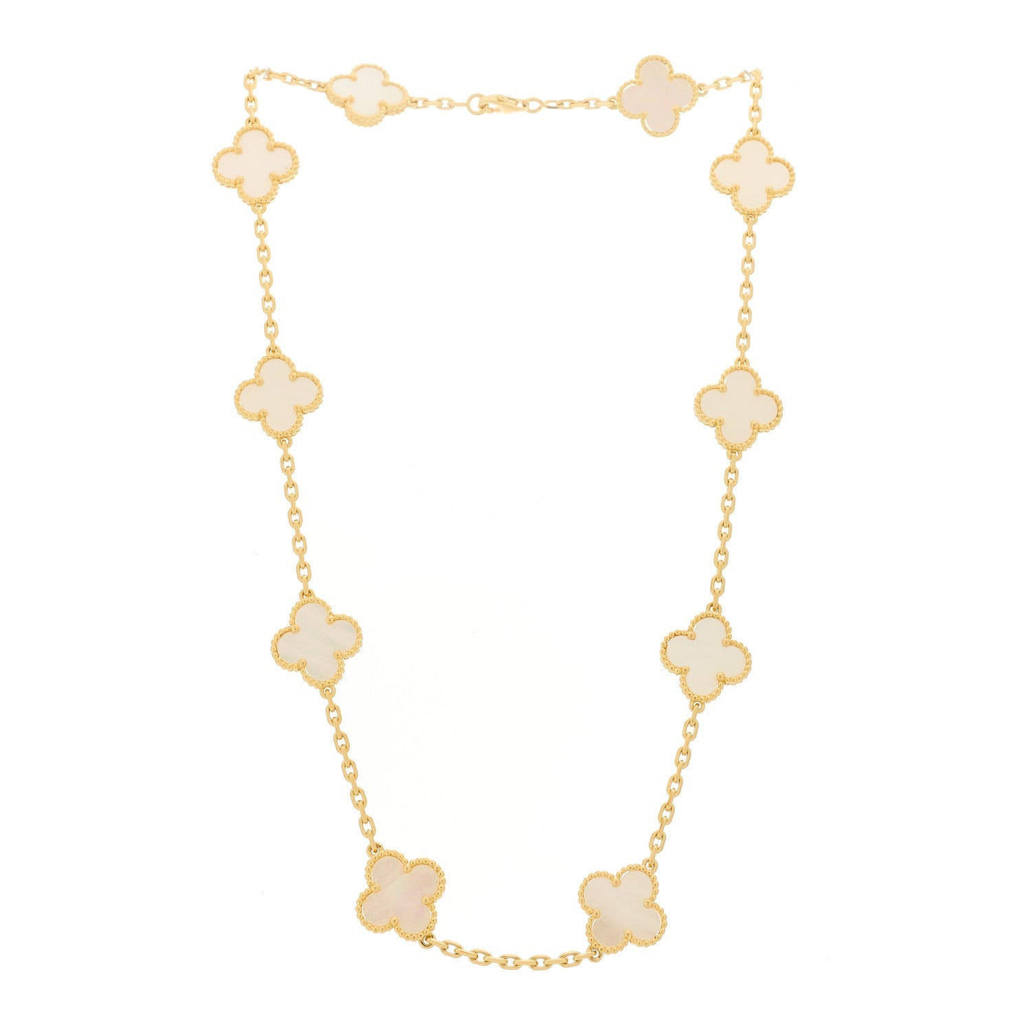 ヴァンクリーフ&アーペル 18Kイエローゴールド マザーオブパール 10モチーフ ヴィンテージ アルハンブラ ネックレス