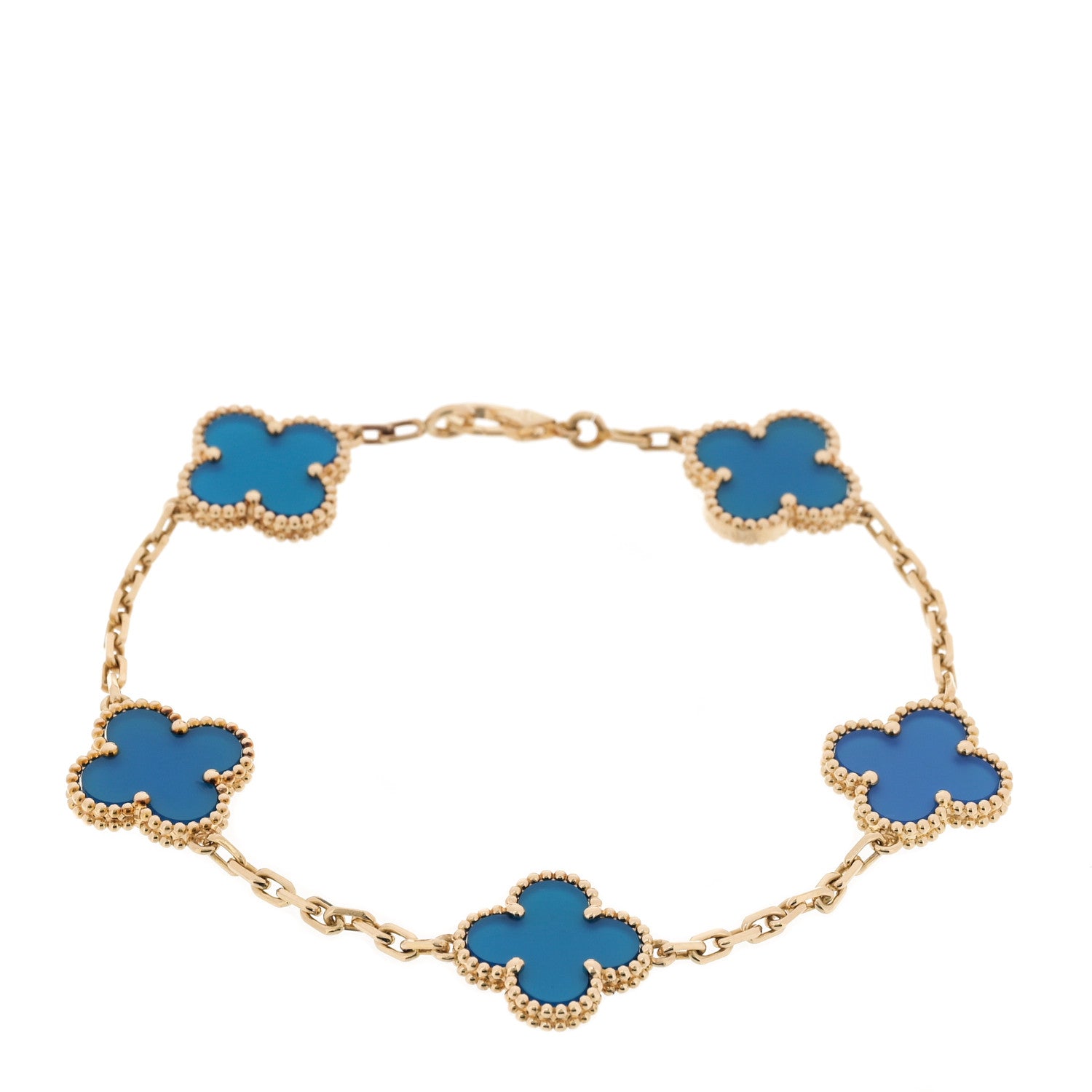 ヴァンクリーフ&アーペル 18Kイエローゴールド ブルーアゲート 5モチーフ ヴィンテージ アルハンブラ ブレスレット