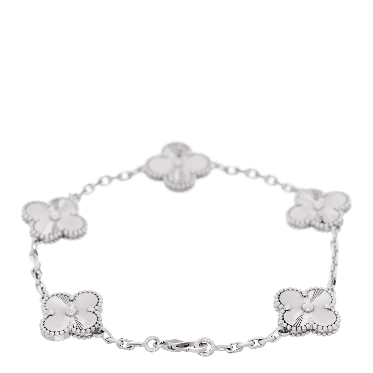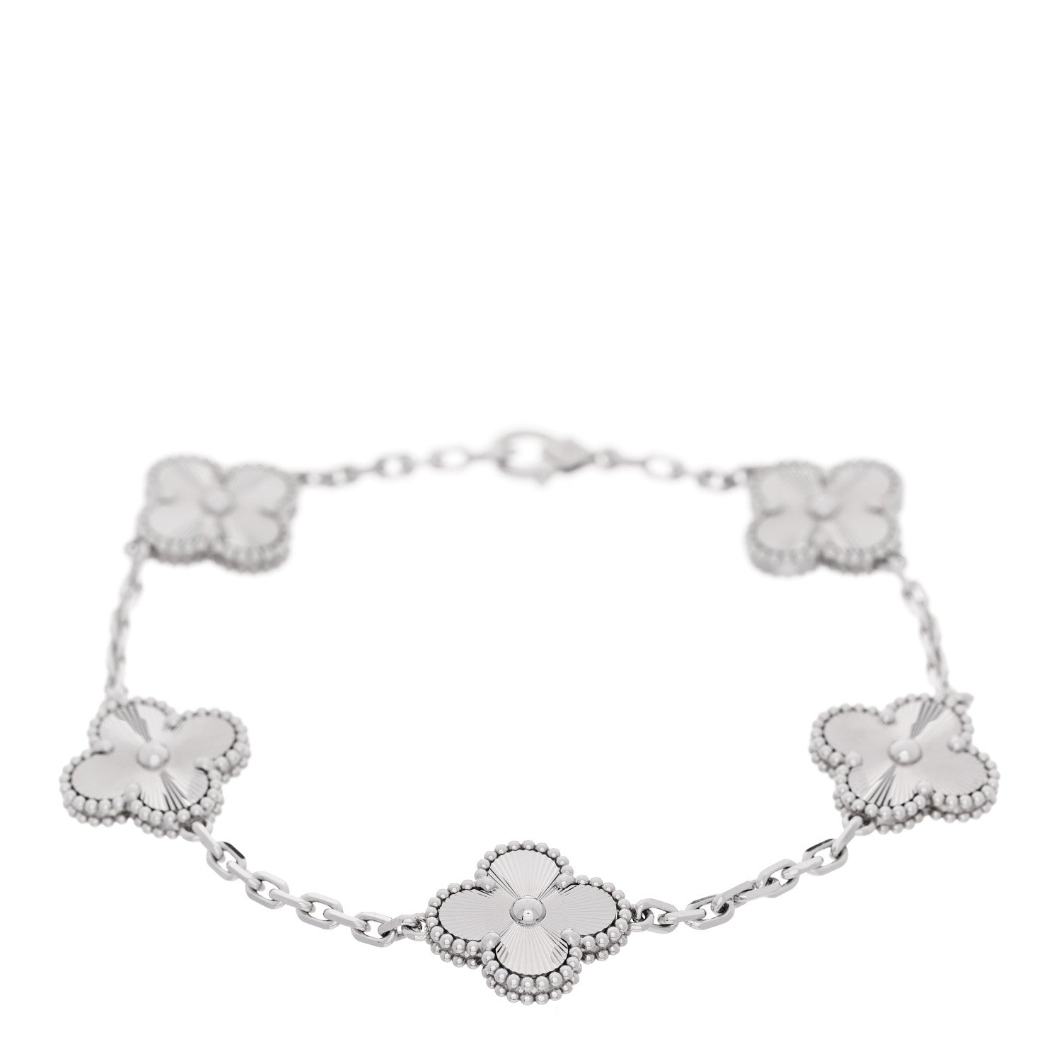 ヴァンクリーフ&アーペル 18Kホワイトゴールド 5モチーフ ギョーシェ ヴィンテージ アルハンブラ ブレスレット