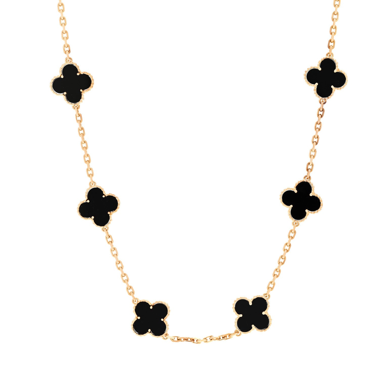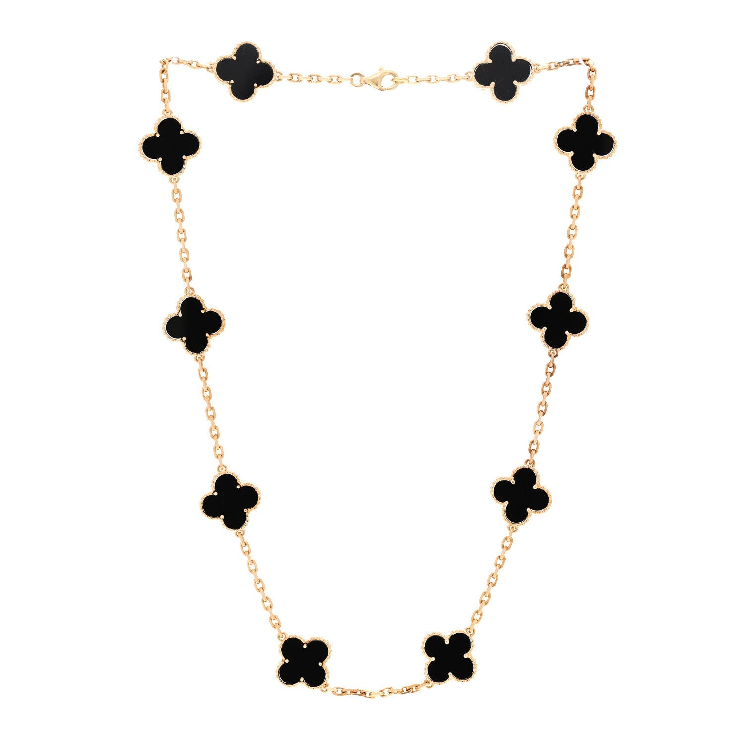 ヴァンクリーフ&アーペル 18Kイエローゴールド ブラックオニキス 10モチーフ ヴィンテージ アルハンブラ ネックレス