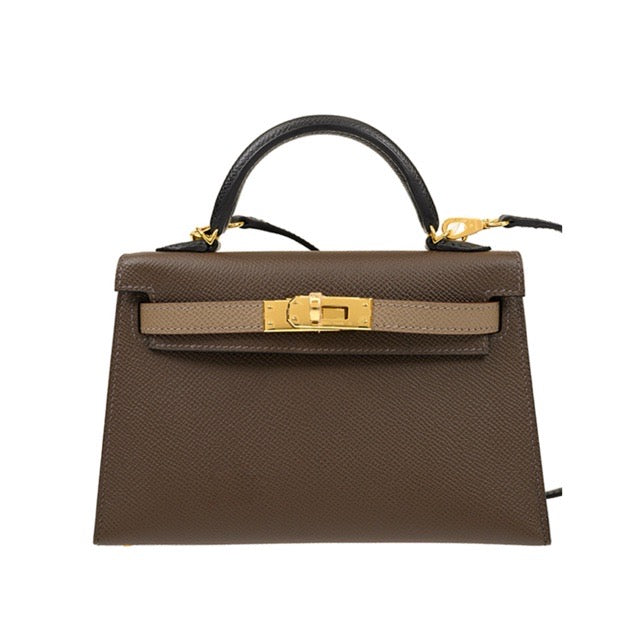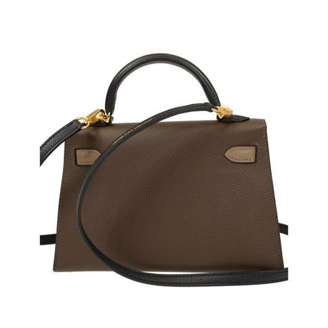 エルメス ミニケリー ケリーミニ2 ミニドゥ 外縫い トリコロール エコルセ エトゥープ ブラック ノワール エプソン ゴールド金具 HERMES KELLY MINI 2 SELLIER 20 TRI-COLOR ECORCE ETOUPE BLACK NOIR EPSOM GOLD HARDWARE