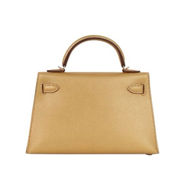 エルメス ミニケリー ケリーミニ2 ミニドゥ 外縫い ドレ メタリックゴールド シェーブル シャムキラ パーマブラス シャンパンゴールド金具 HERMES KELLY MINI 2 SELLIER 20 DORE METALIC GOLD CHEVRE CHAMKILA PERMABRASS GOLD HARDWARE