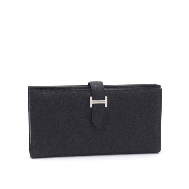 エルメス ベアンスフレ ベアンロングウォレット ブラック シェーブル シルバー金具 長財布 HERMES BEARN GUSSET WALLET BLACK CHEVRE SILVER HARDWARE【中古】