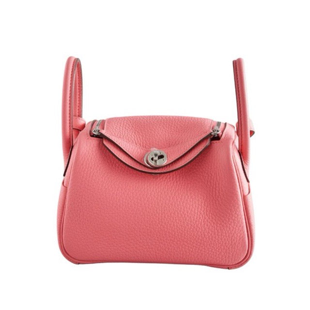 HERMES MINI LINDY 20 ROSE AZALEE TAURILLON CLEMENCE SILVER HARDWARE