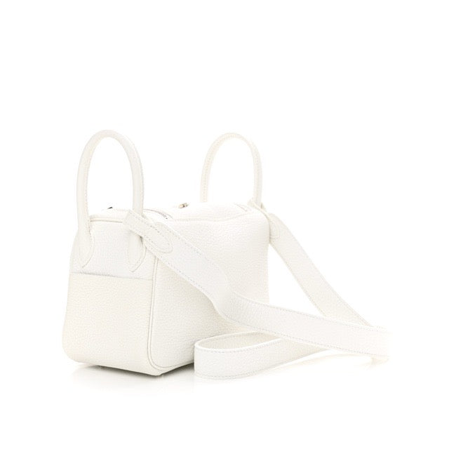 HERMES MINI LINDY 20 NEW WHITE TAURILLON CLEMENCE SILVER HARDWARE