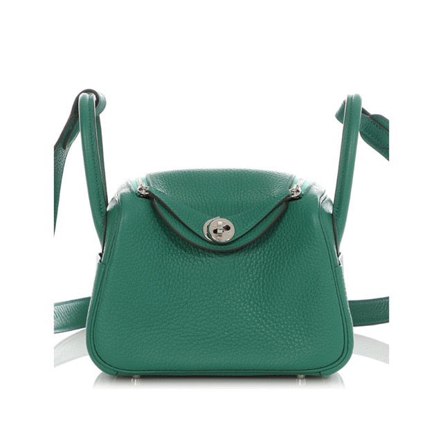 HERMES MINI LINDY 20 VERT VERTIGO TAURILLON CLEMENCE SILVER HARDWARE