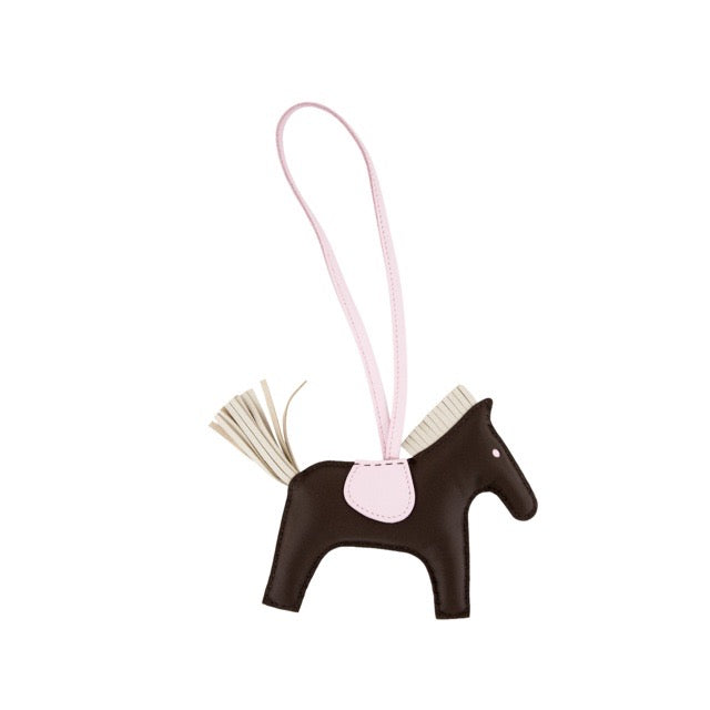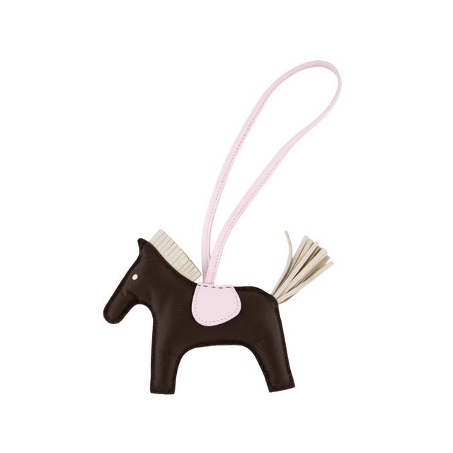HERMES RODEO HORSE BAG CHARM MM GRIGRI CHOCOLATE CRAIE ROSE DARLING MILO LAMBSKIN