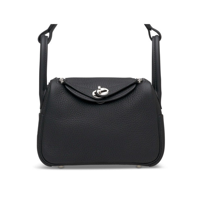 HERMES MINI LINDY 20 BLACK TAURILLON CLEMENCE SILVER HARDWARE