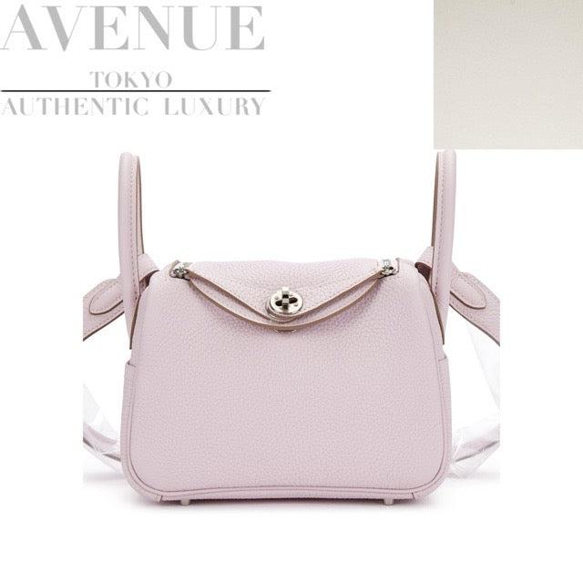 HERMES MINI LINDY 20 VERSO MAUVE PALE NEW WHITE TAURILLON CLEMENCE SILVER HARDWARE