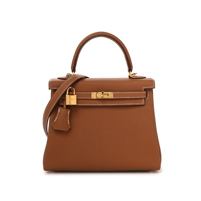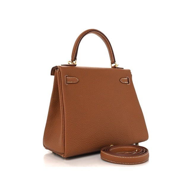 HERMES KELLY 25 RETOURNE GOLD TOGO GOLD HARDWARE