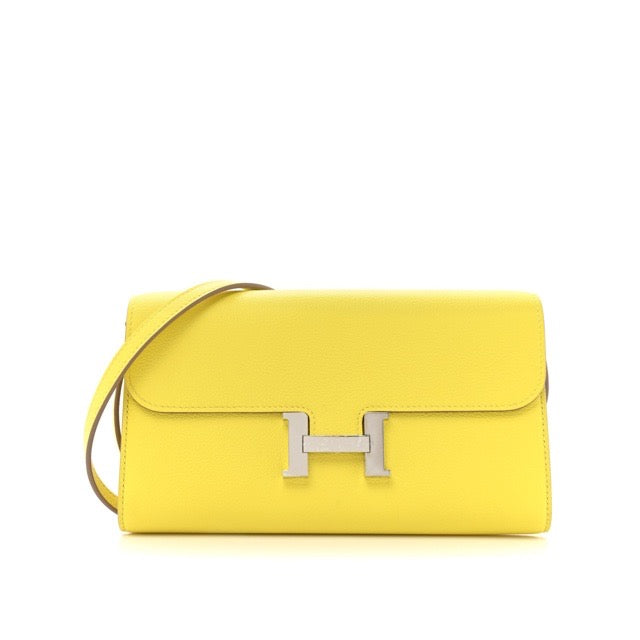HERMES CONSTANCE WALLET TO GO LONG WALLET LIME EVERCOLOR SILVER HARDWARE